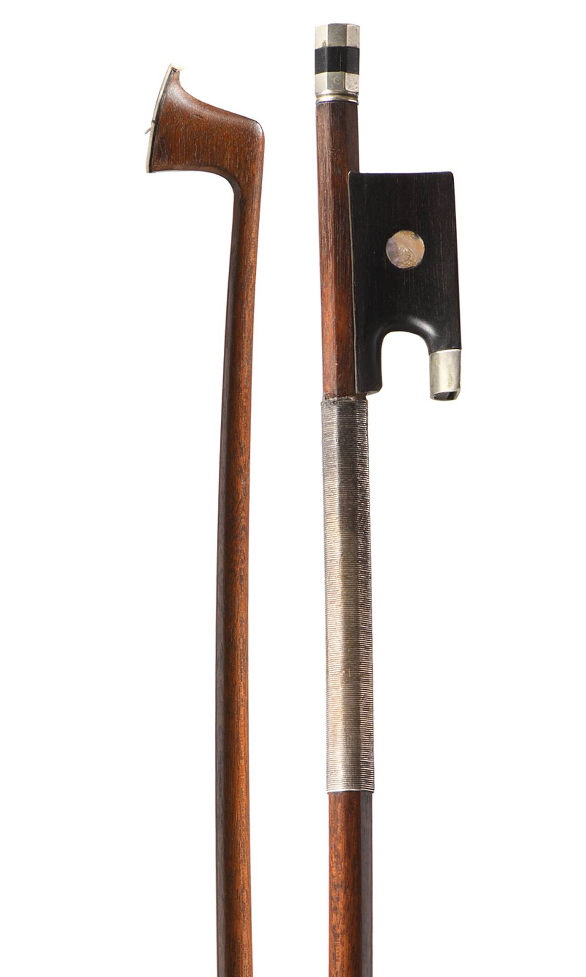 Baguette en bois de pernambouc. Hausse ébène, monté maillechort.