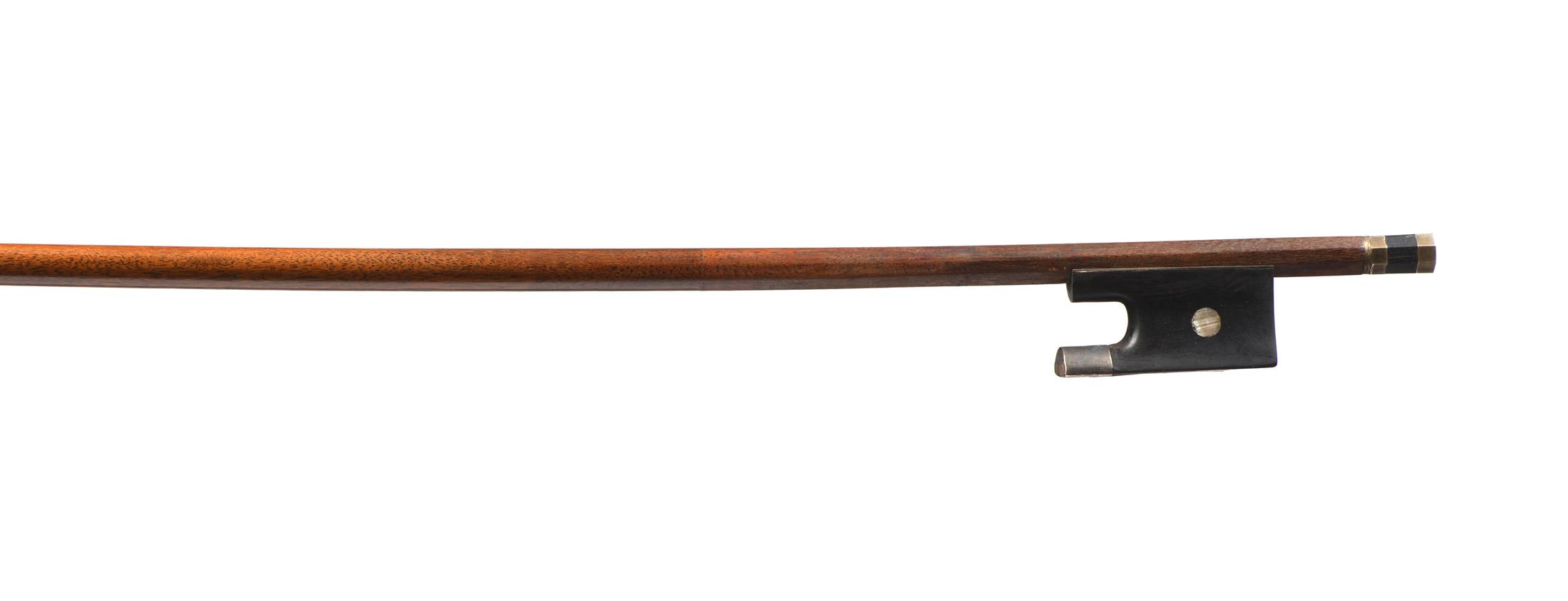 Baguette ronde en bois de pernambouc. Hausse ébène, Monté argent. Réparation à la hausse. Bouton d'un autre auteur.