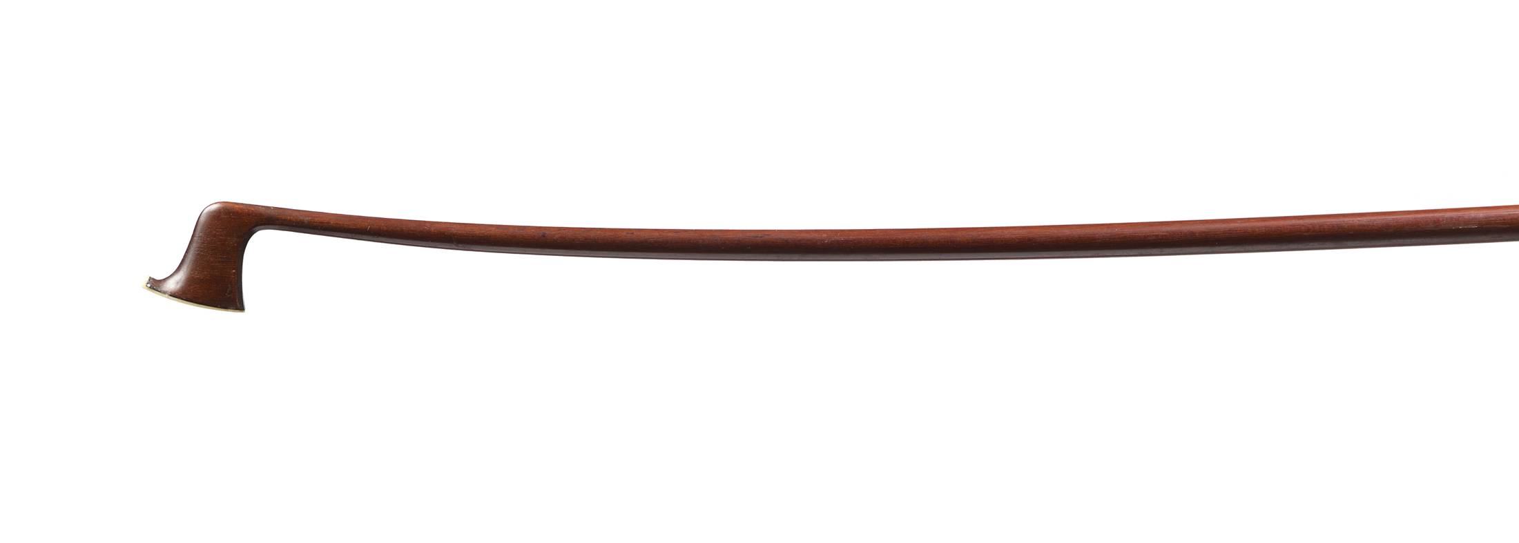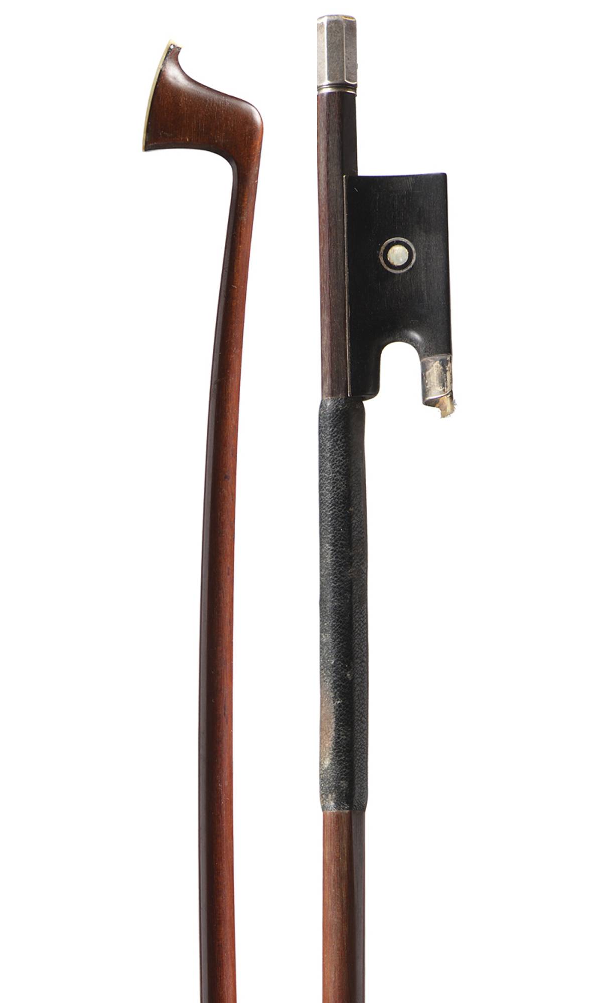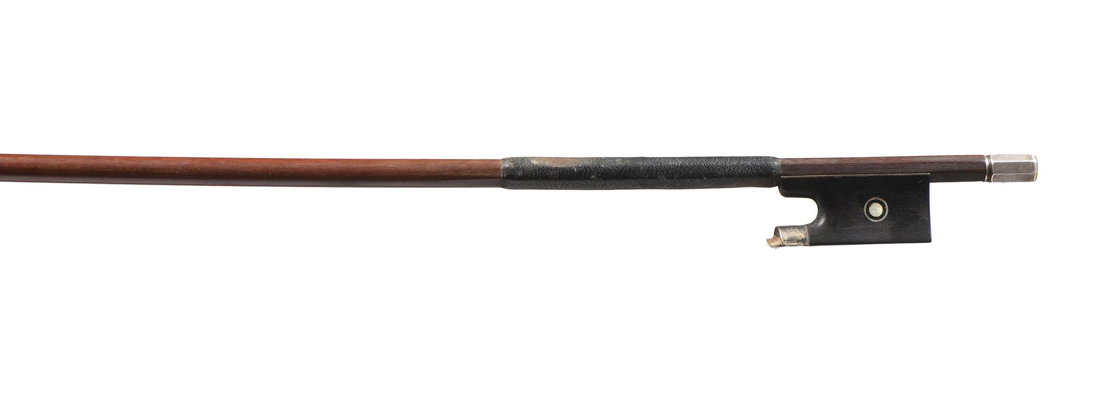 Baguette ronde en bois de pernambouc. Hausse ébène, monté argent, avec grain cerclé.