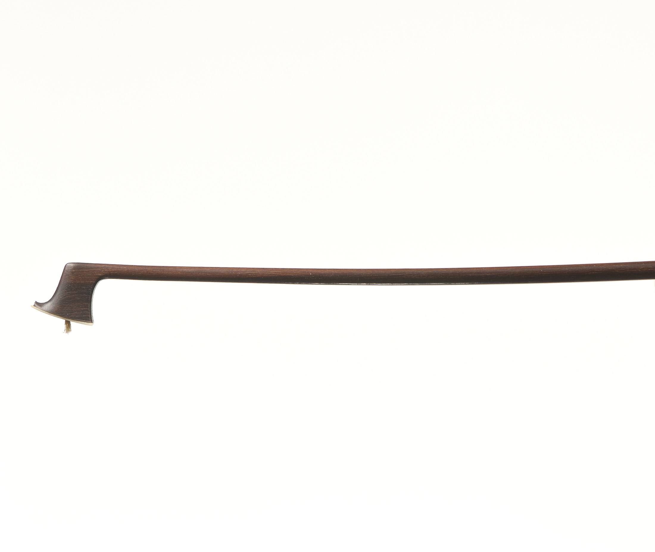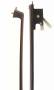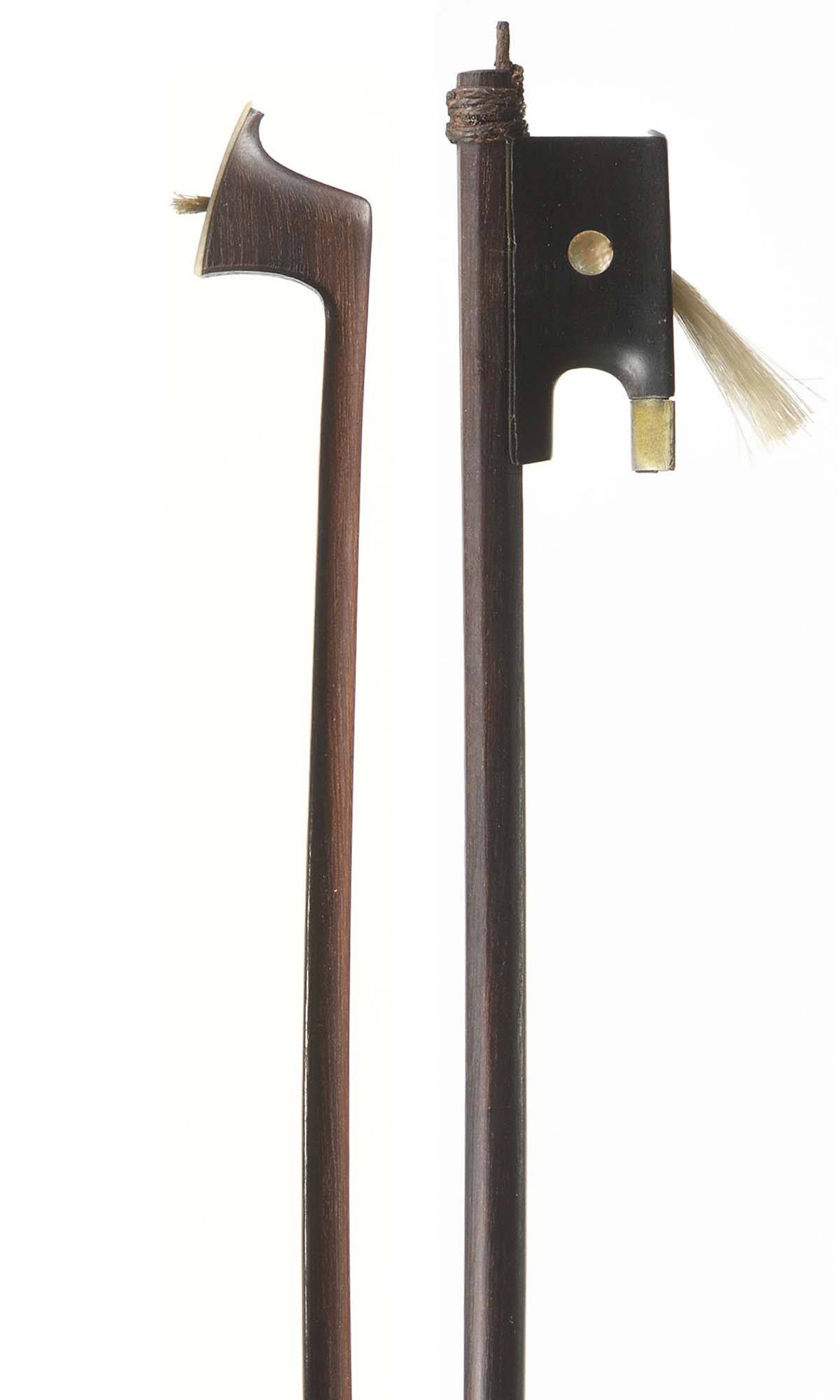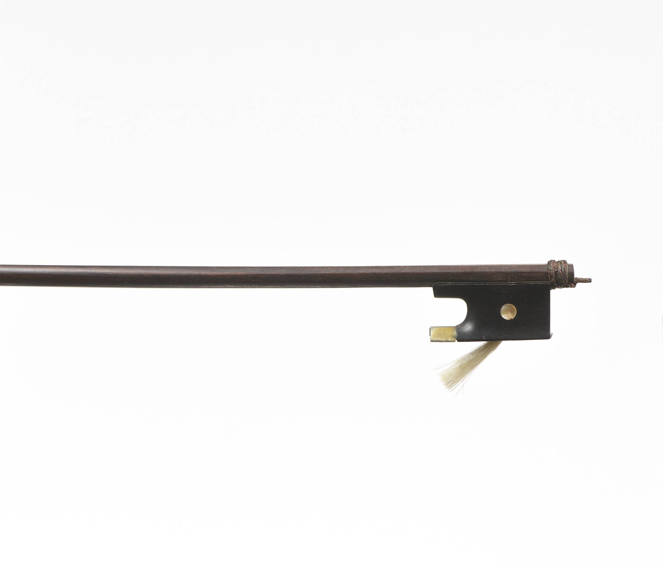 Baguette ronde en bois exotique. Hausse ébène montée maillechort. Manque le bouton. Cassures au pan. 45 g sans bouton, ni mèche, ni garniture. 716 mm.