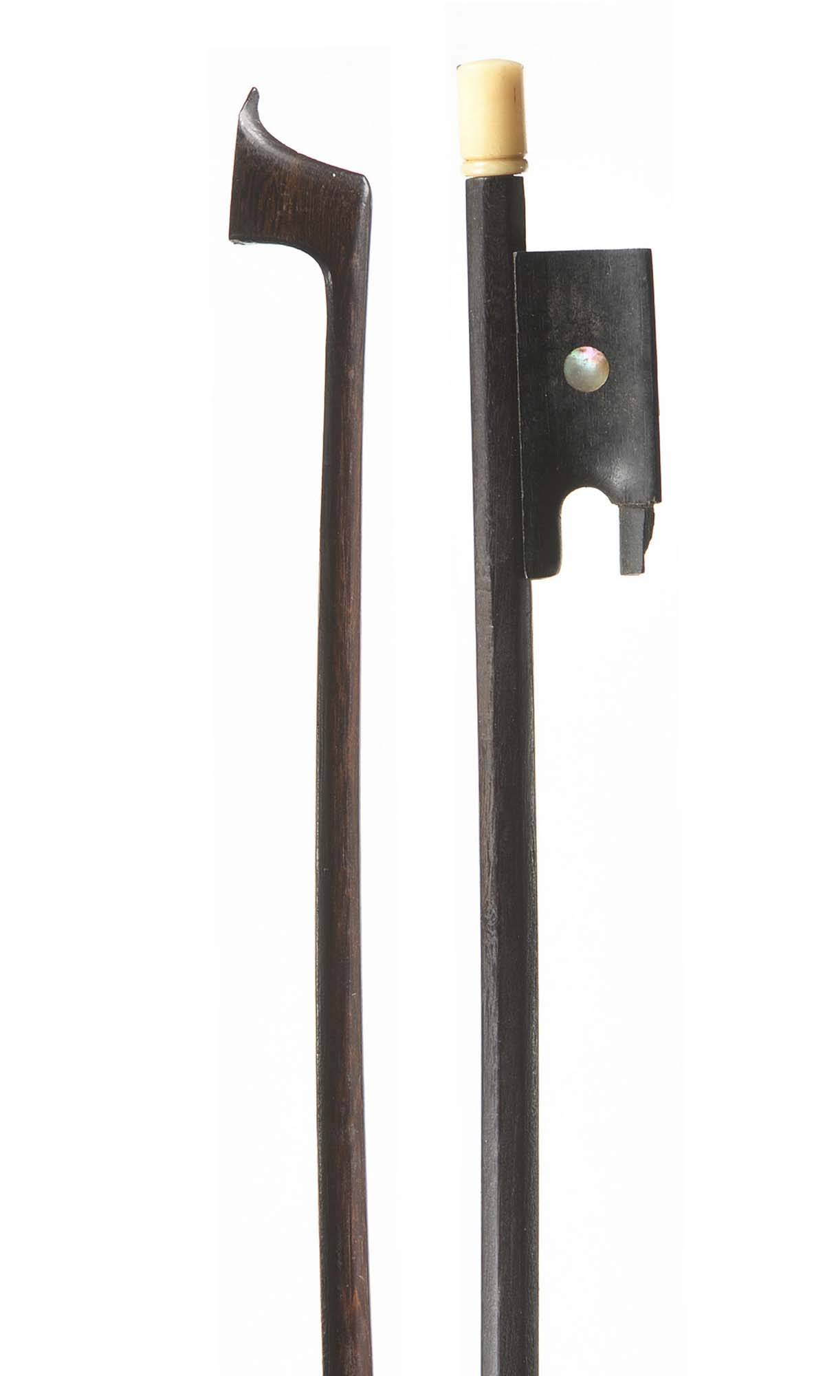 Baguette octogonale en bois d'amourette, dans le style de FONCLAUSE. Hausse et bouton d'un autre auteur. 722 mm.