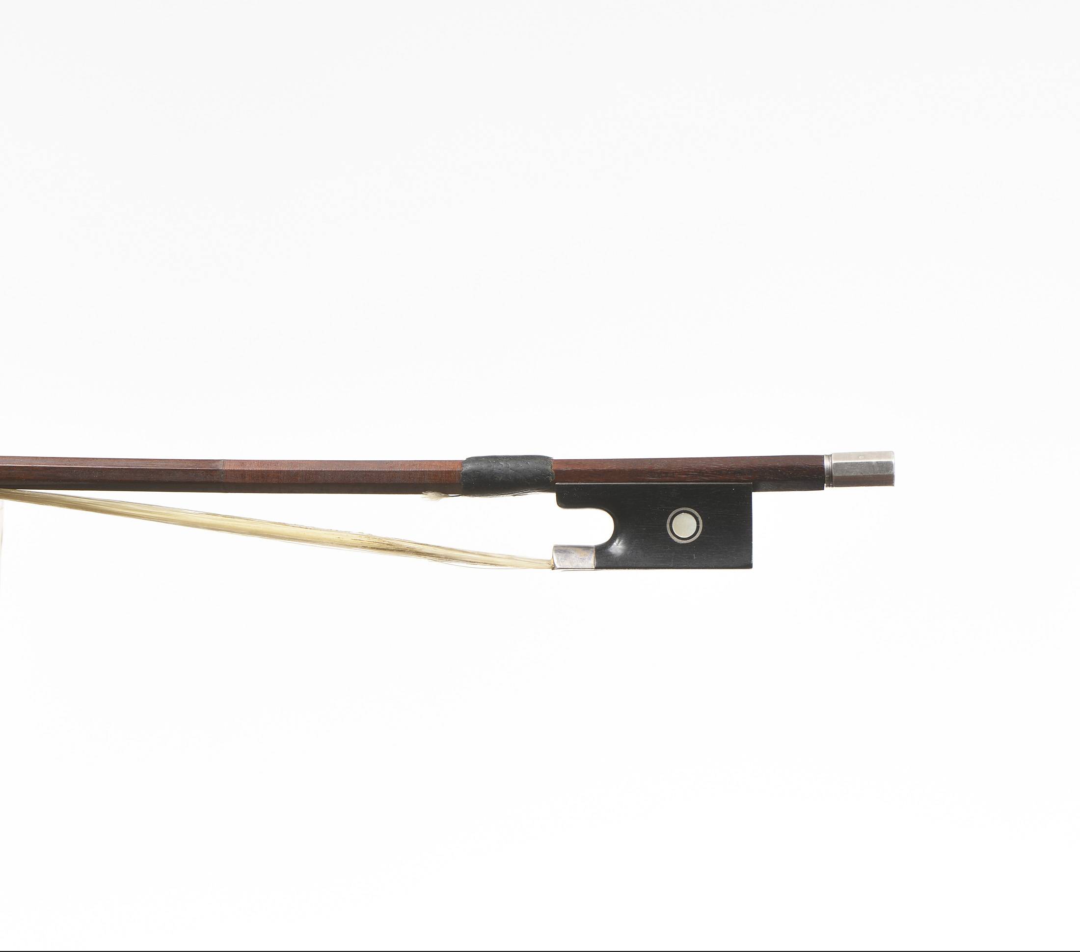 fait par Morizot père pour Victor FETIQUE dont il porte la marque au fer. Baguette octogonale en bois de pernambouc. Hausse ébène montée argent. Bouton plein.