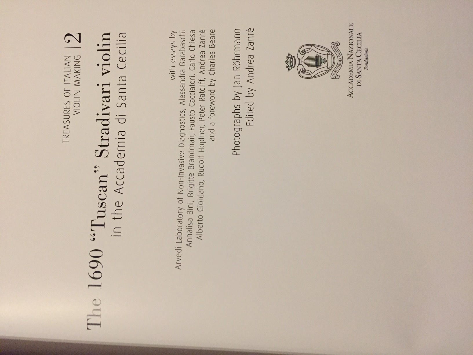 Treasures of Italian Violin Making. The 1690 "Tuscan" Stradivari violin in the Accademia of Santa Cecilia. Edizioni Scrollavezza et ZANRE. JAN ROHRMANN. Vol 2.