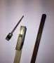 portant une marque au fer "CUNIOT HURY". Baguette ronde en bois de pernambouc. Hausse ébène, montée argent. Cassure à la hausse. Bouton d'un autre auteur. 726 mm.