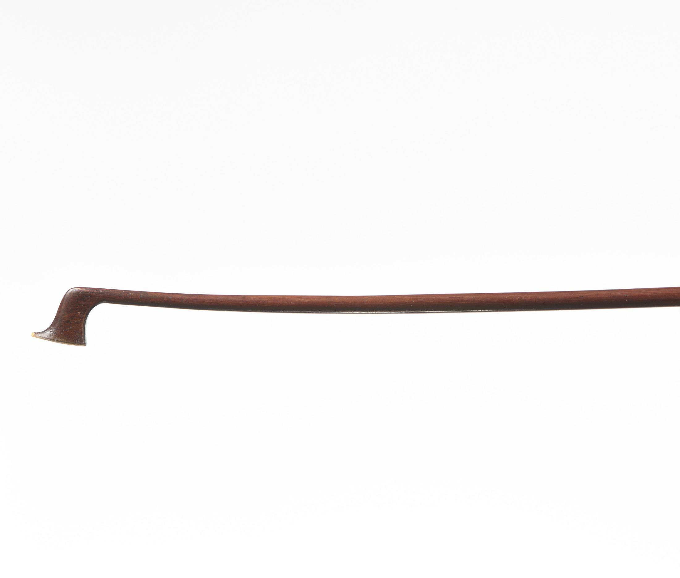 Baguette ronde en bois de pernambouc. Hausse ébène, montée maillechort. 732 mm. 48 g. Restauré à la tête.