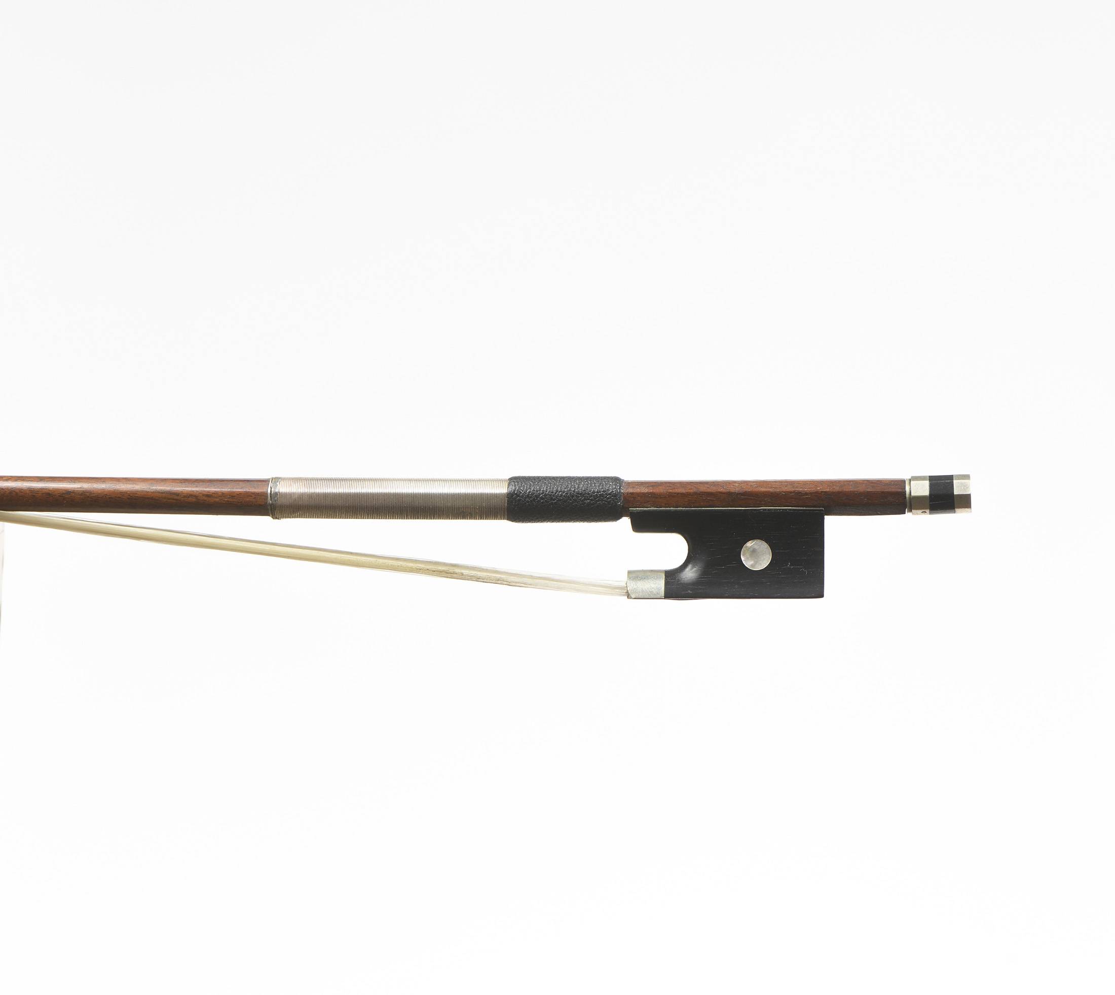 Baguette en bois de pernambouc. Hausse ébène montée maillechort. 58 g. 733 mm.