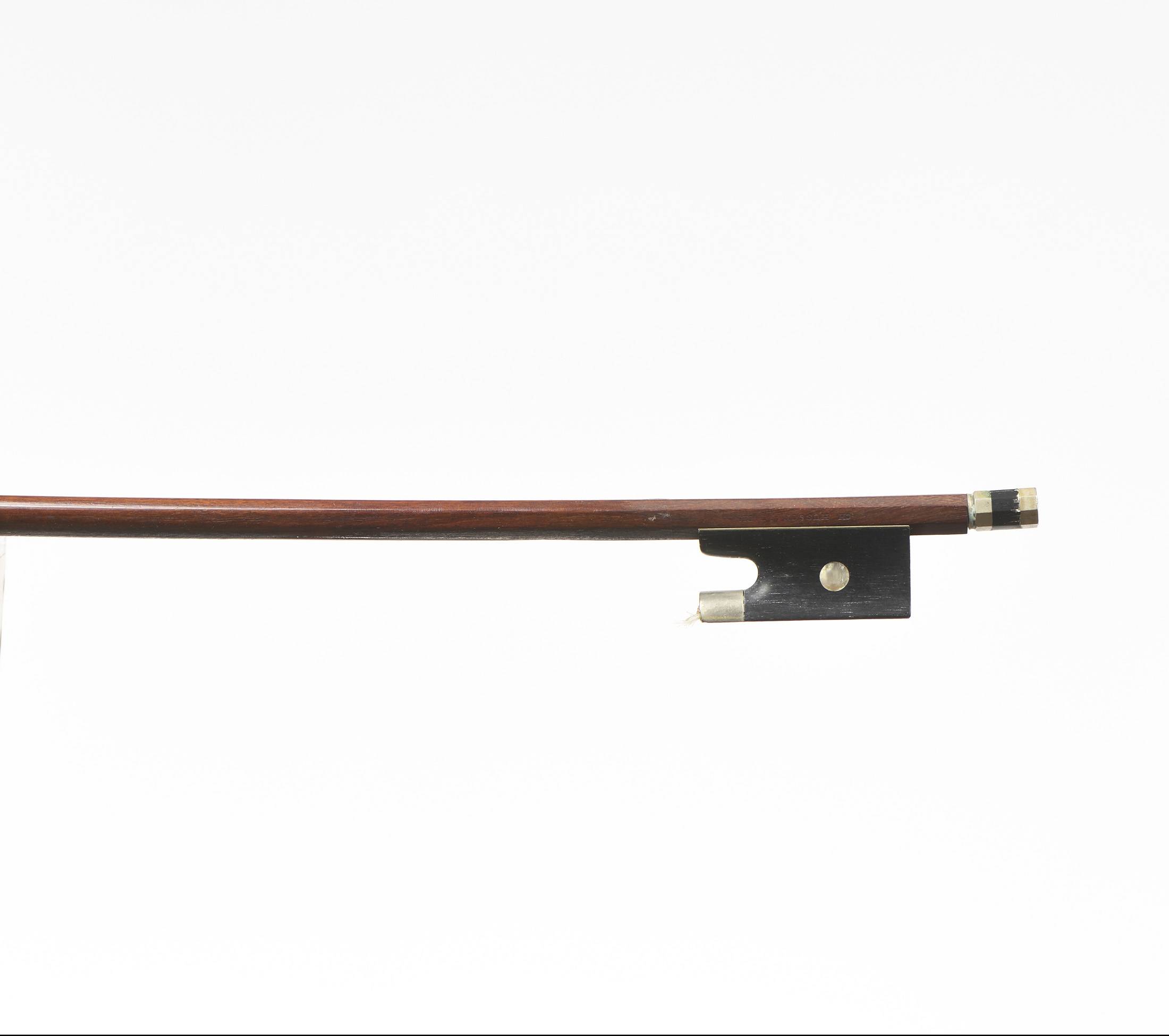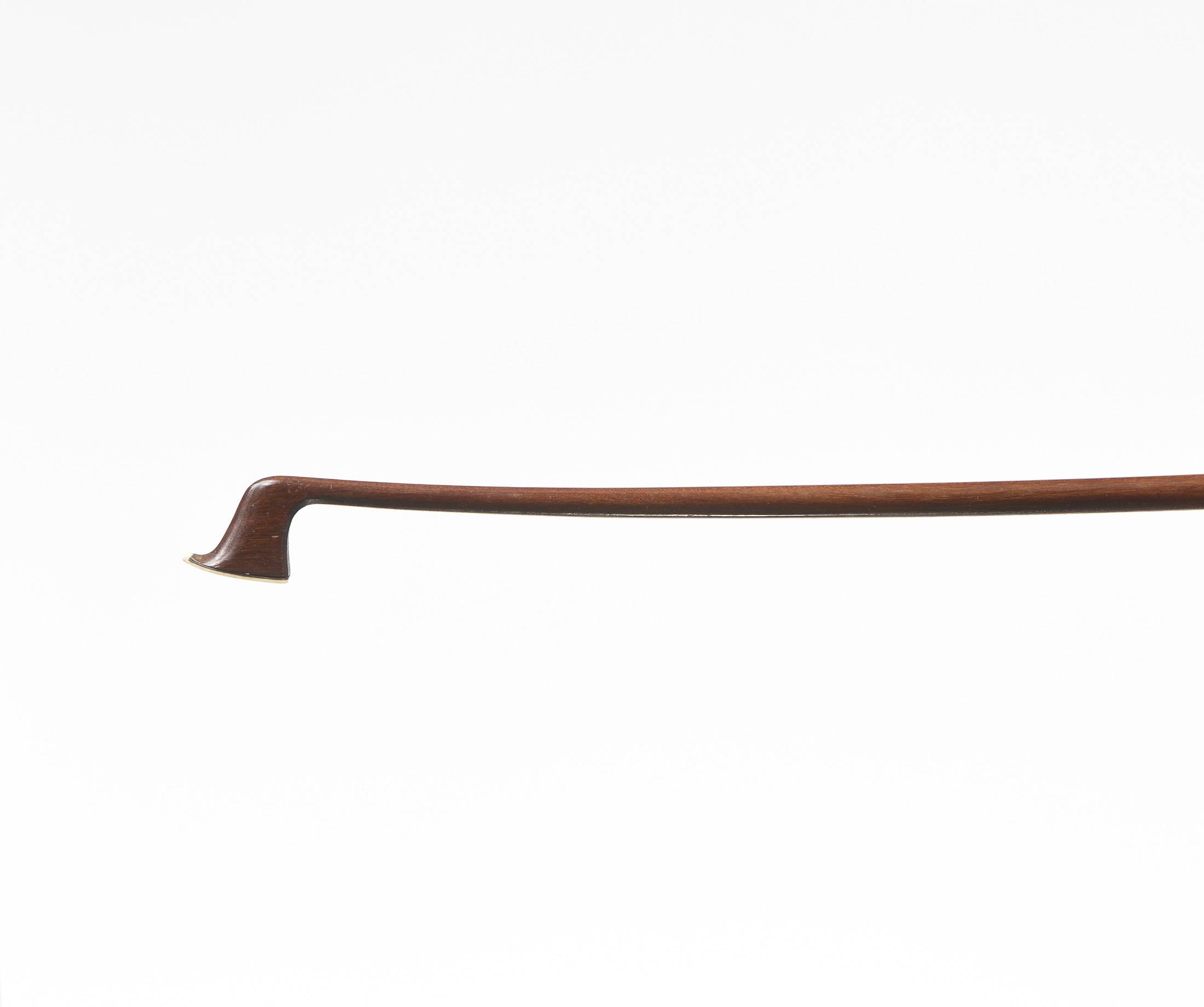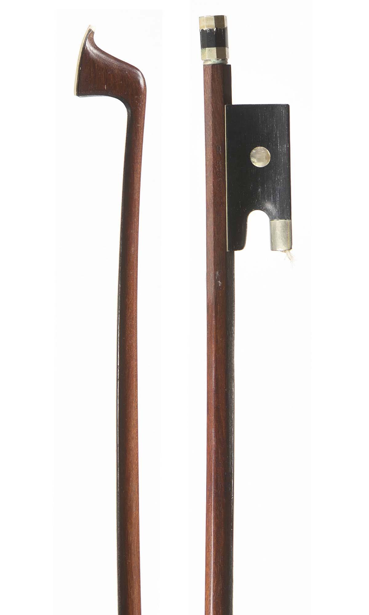 portant une marque au fer apocryphe "HUSSON". Baguette ronde en bois de pernambouc. Hausse ébène, montée maillechort. 56 g sans mèche, ni garniture. 727 mm.