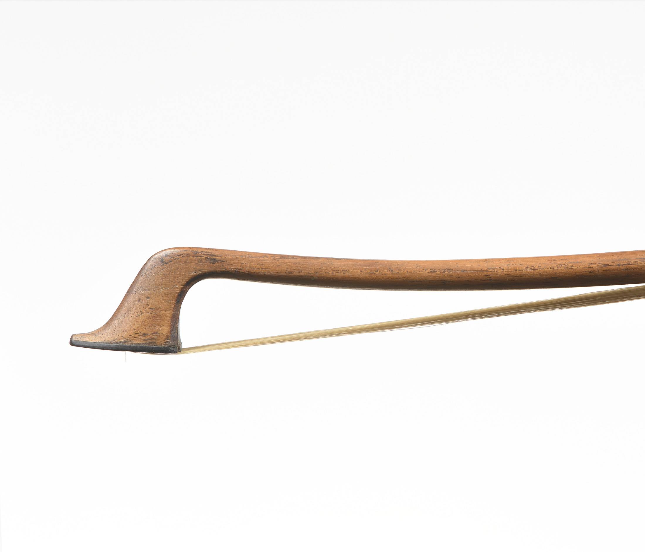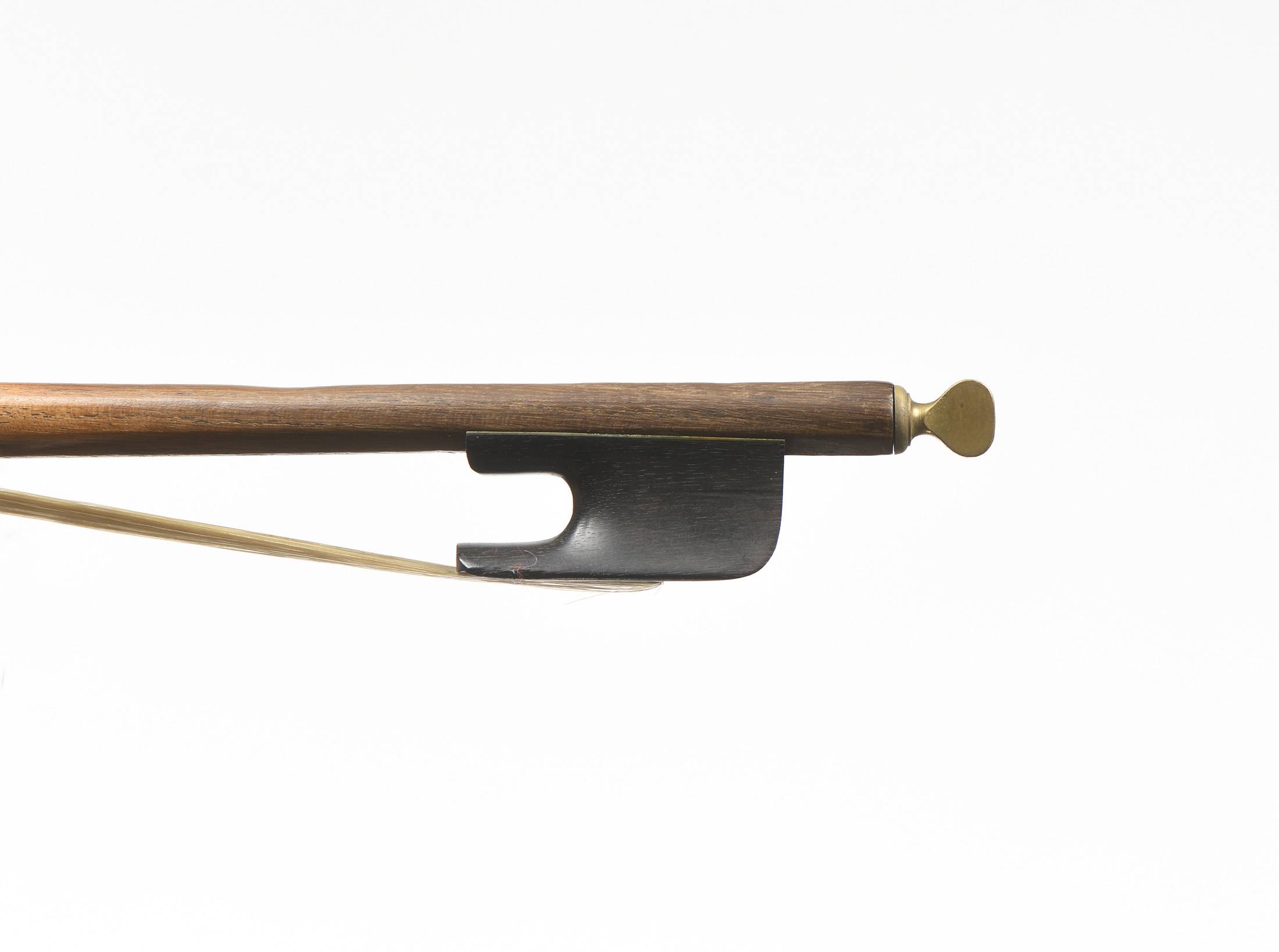 baguette ronde en bois exotique. Hausse ouverte en ébène. Bouton papillon en métal. 124 g. 601 mm.