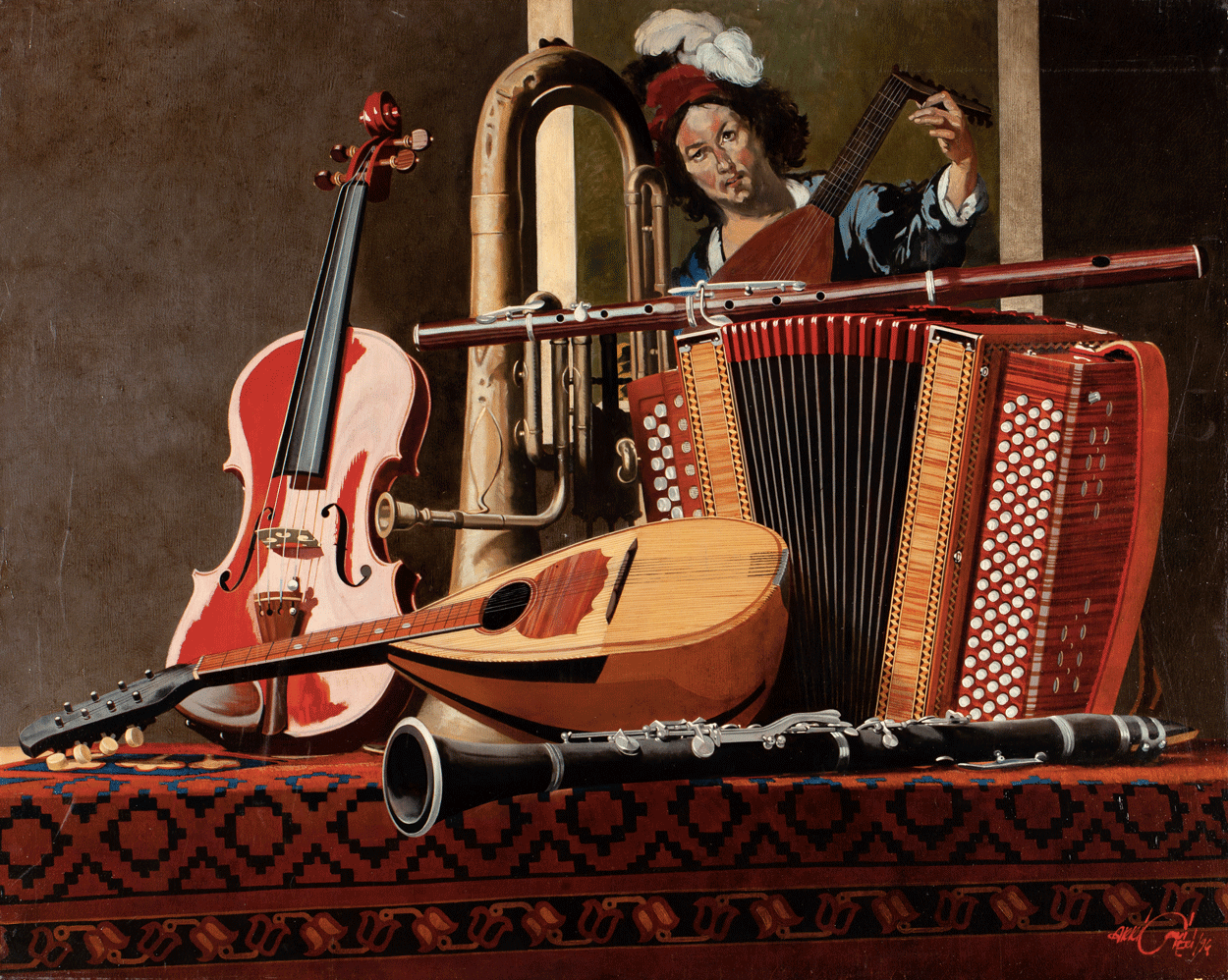 Hommage du peintre à son ami, l’accordéoniste Marcel Azzola qui accompagna notamment
