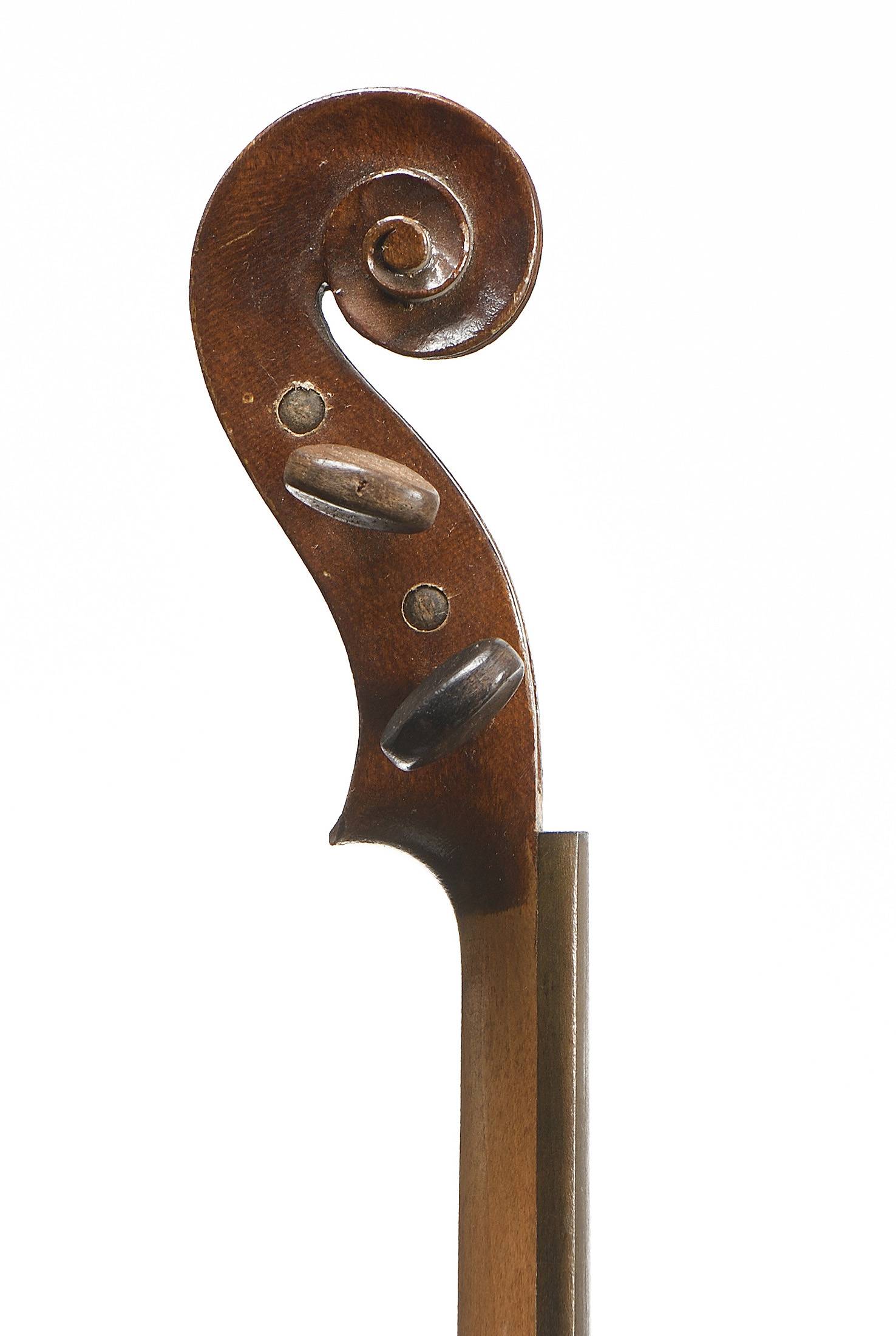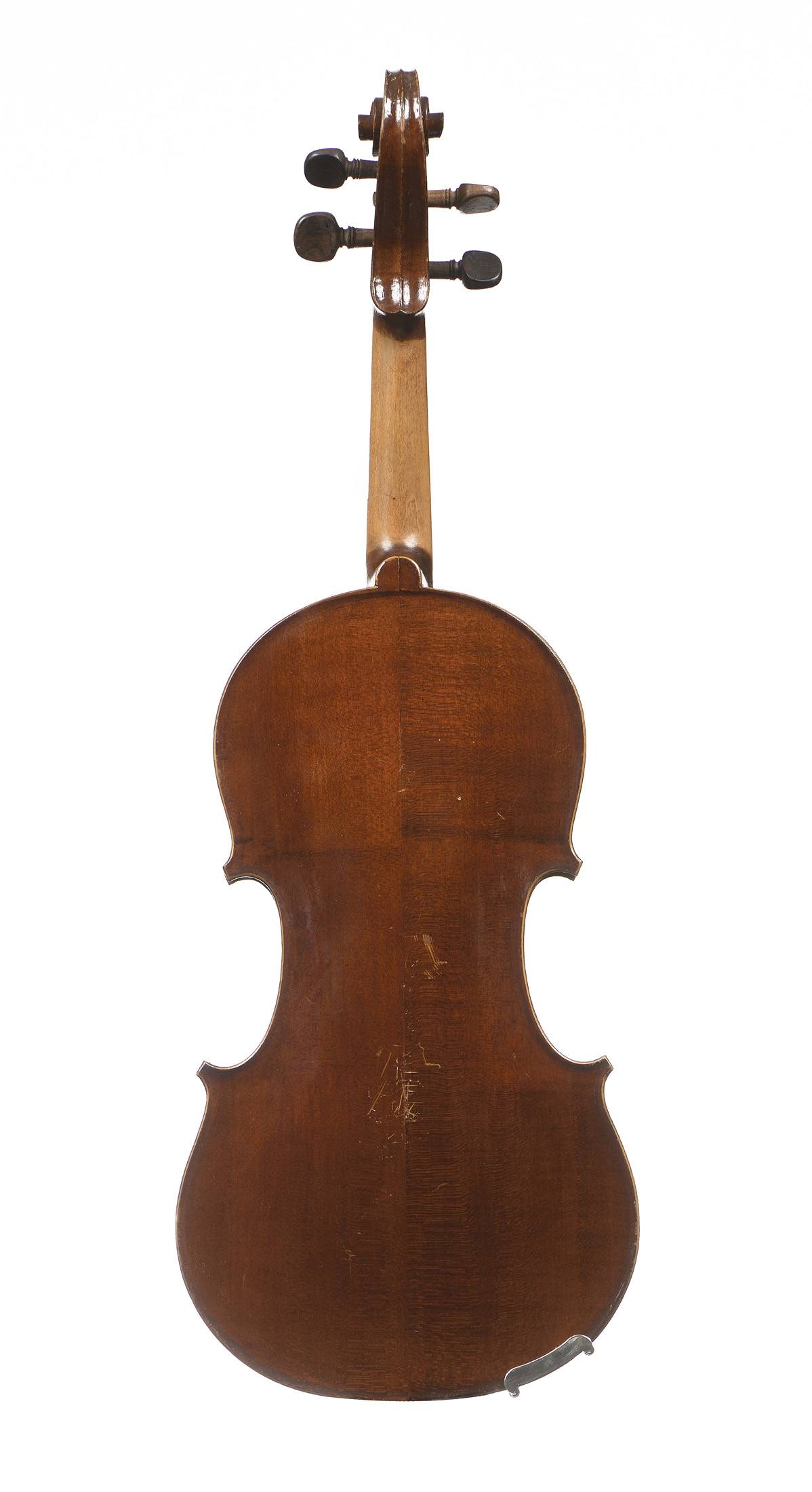 Instrument d'étude sans étiquette. Fait à Mirecourt au début du XXe. Non fileté. Fond de deux pièces en érable.
