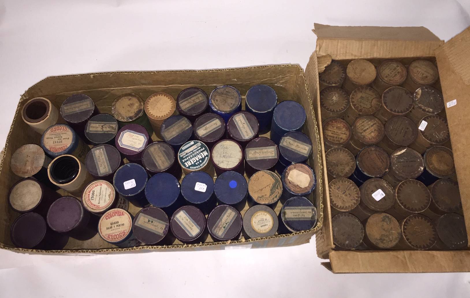 60 cylindres en cire de marques Columbia, Phrynis, J.ULLMANN, Operettes. Mazunka. Garde républicaine et divers.