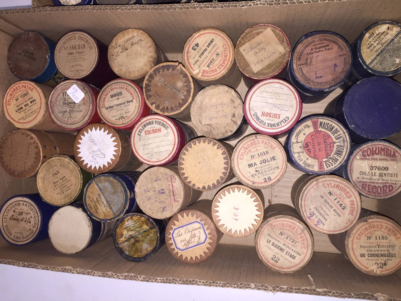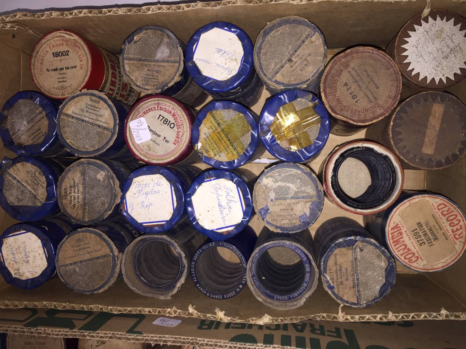 57 cylindres en cire dont Edison, Pathé, Dutrieh, Columbia. Polka, Valses et divers répertoires de Bergeret. Piccaluga. Mercadier.
