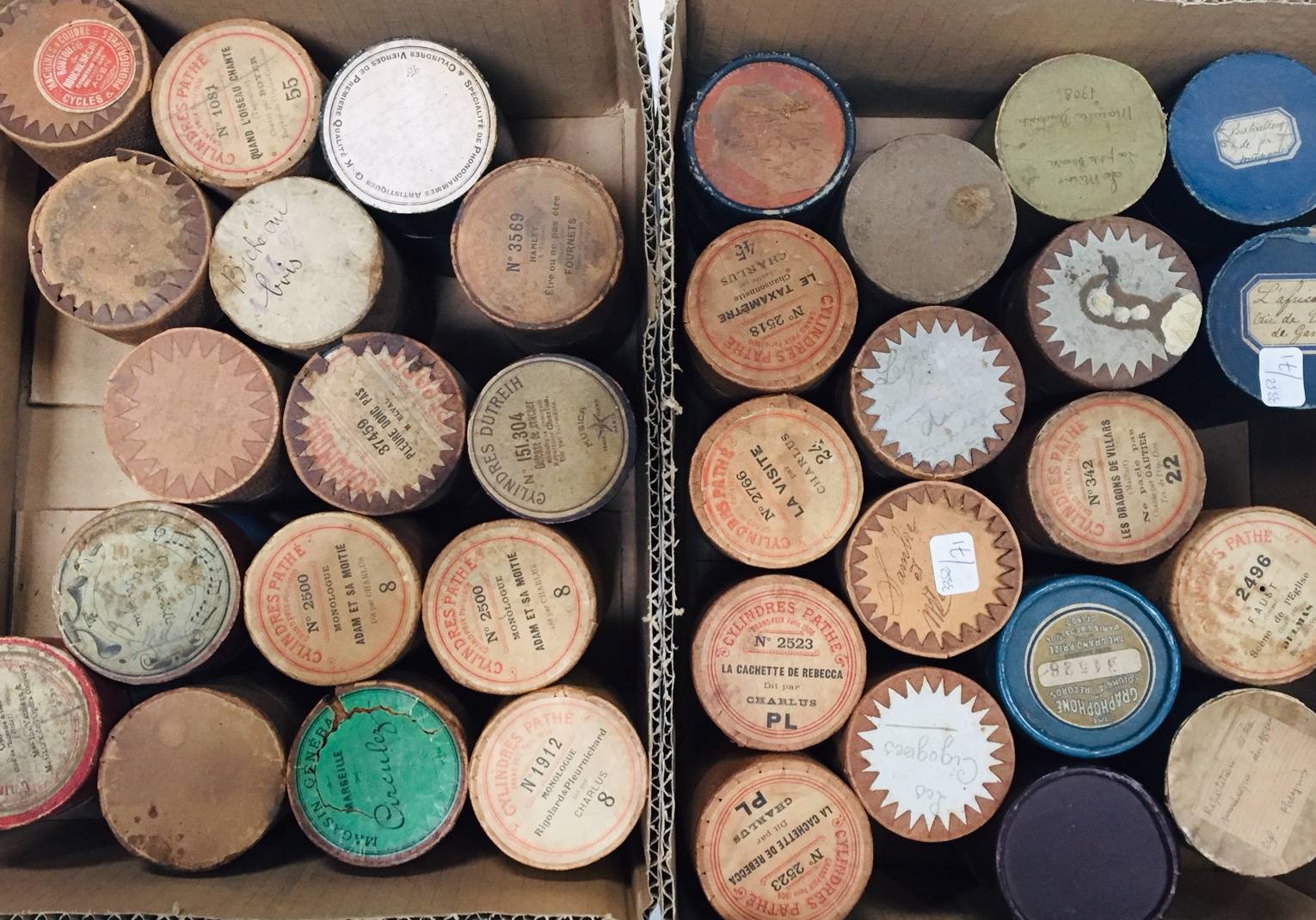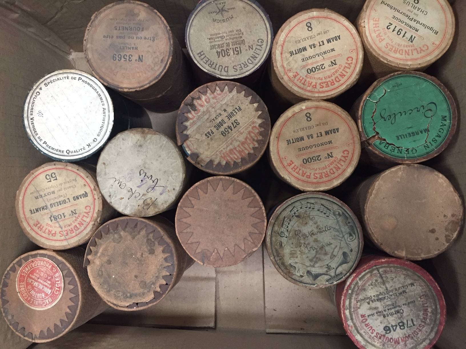 33 cylindres en cire de marques PATHE – GRAPHOPHONE – Magasin Général MARSEILLE – EDISON, avec le répertoire de CHARLUS – ELVAL – FOURNETS – BOYER – GAUTHIER – DELMAS et divers.