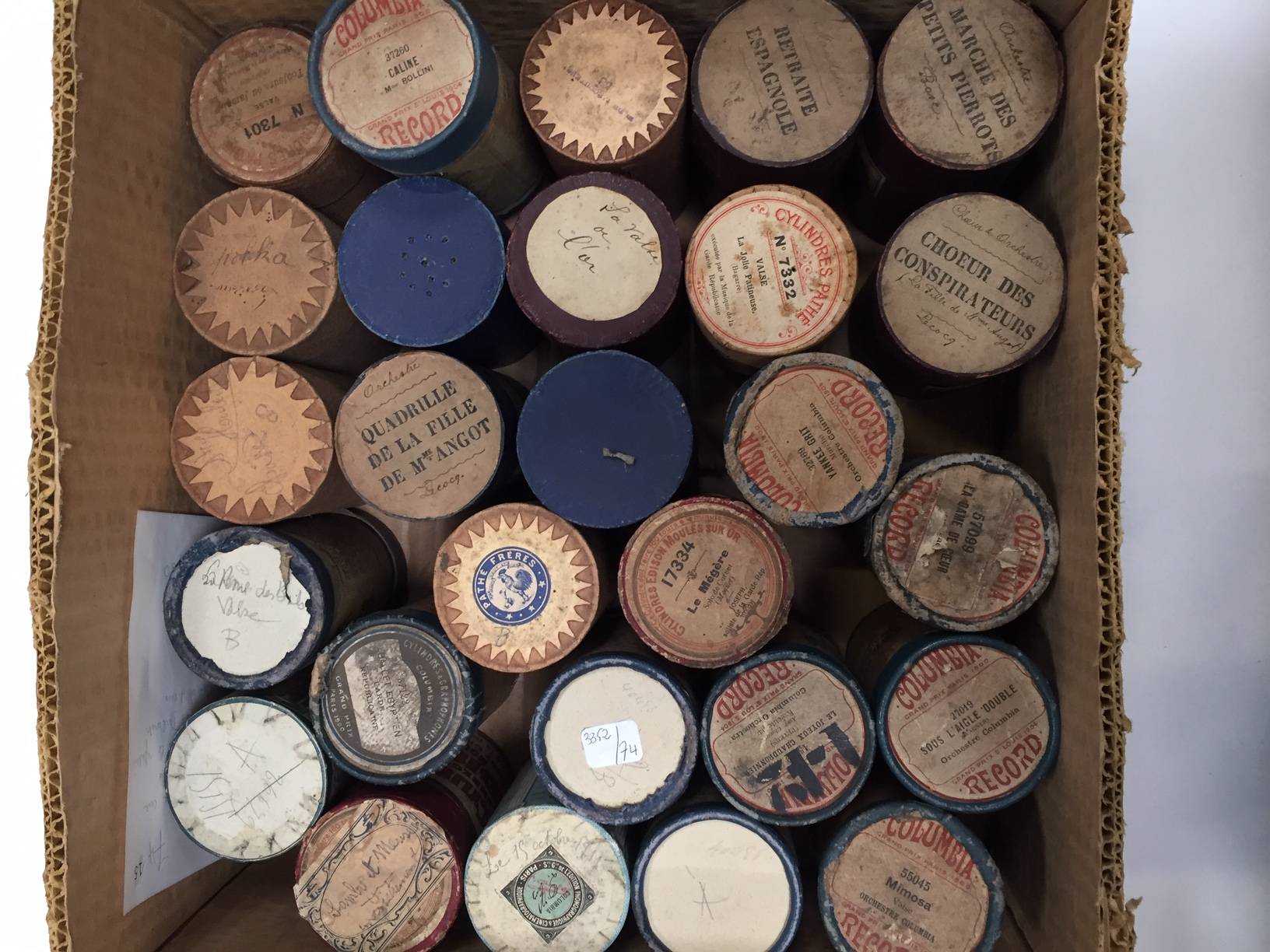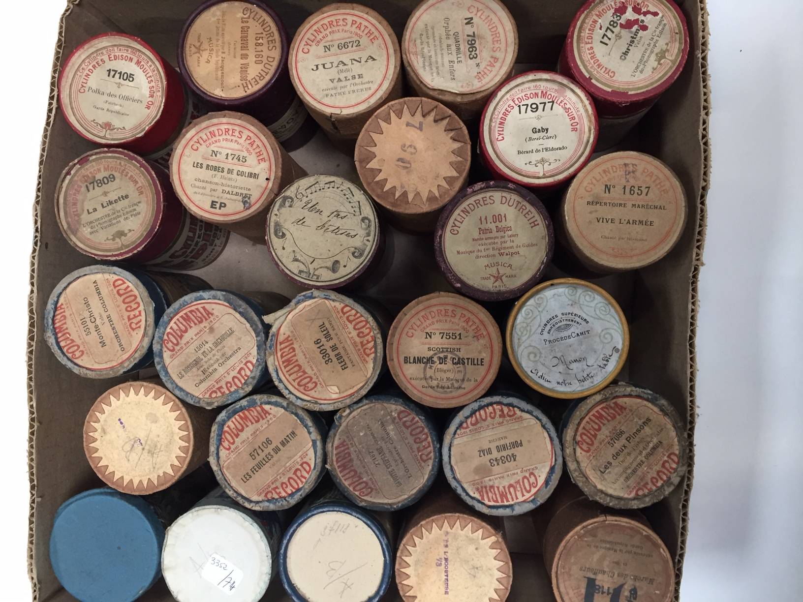 54 cylindres en cire de marques PATHE – COLUMBIA, avec le répertoire de MARECHAL – DALBRET – JOSEPH et divers.