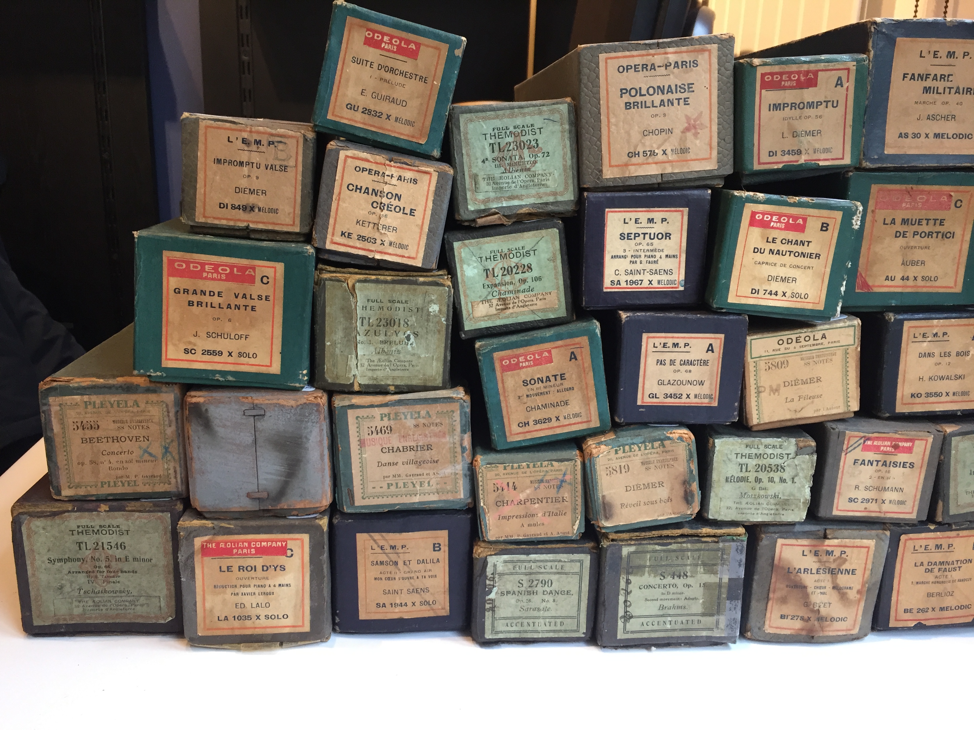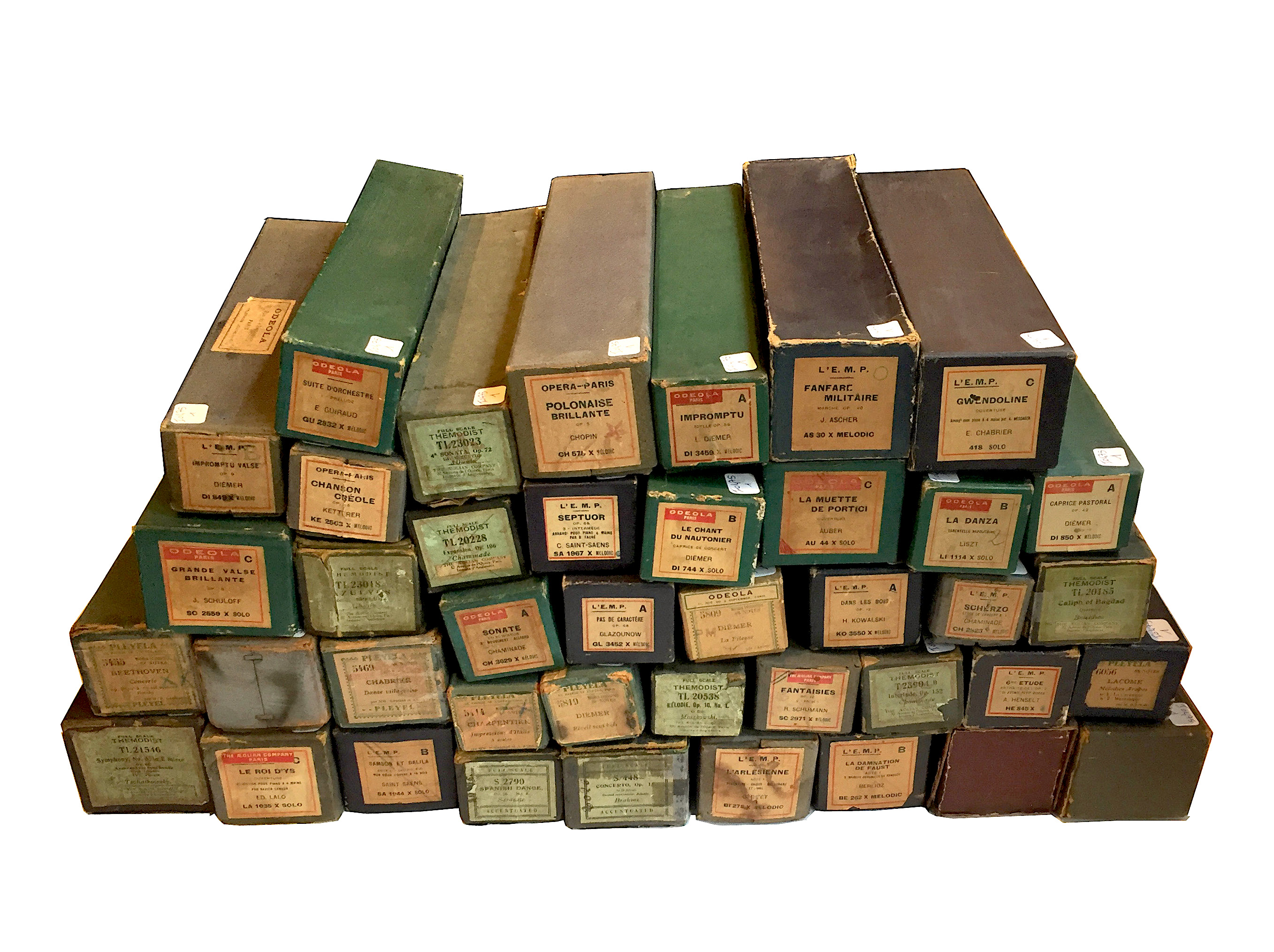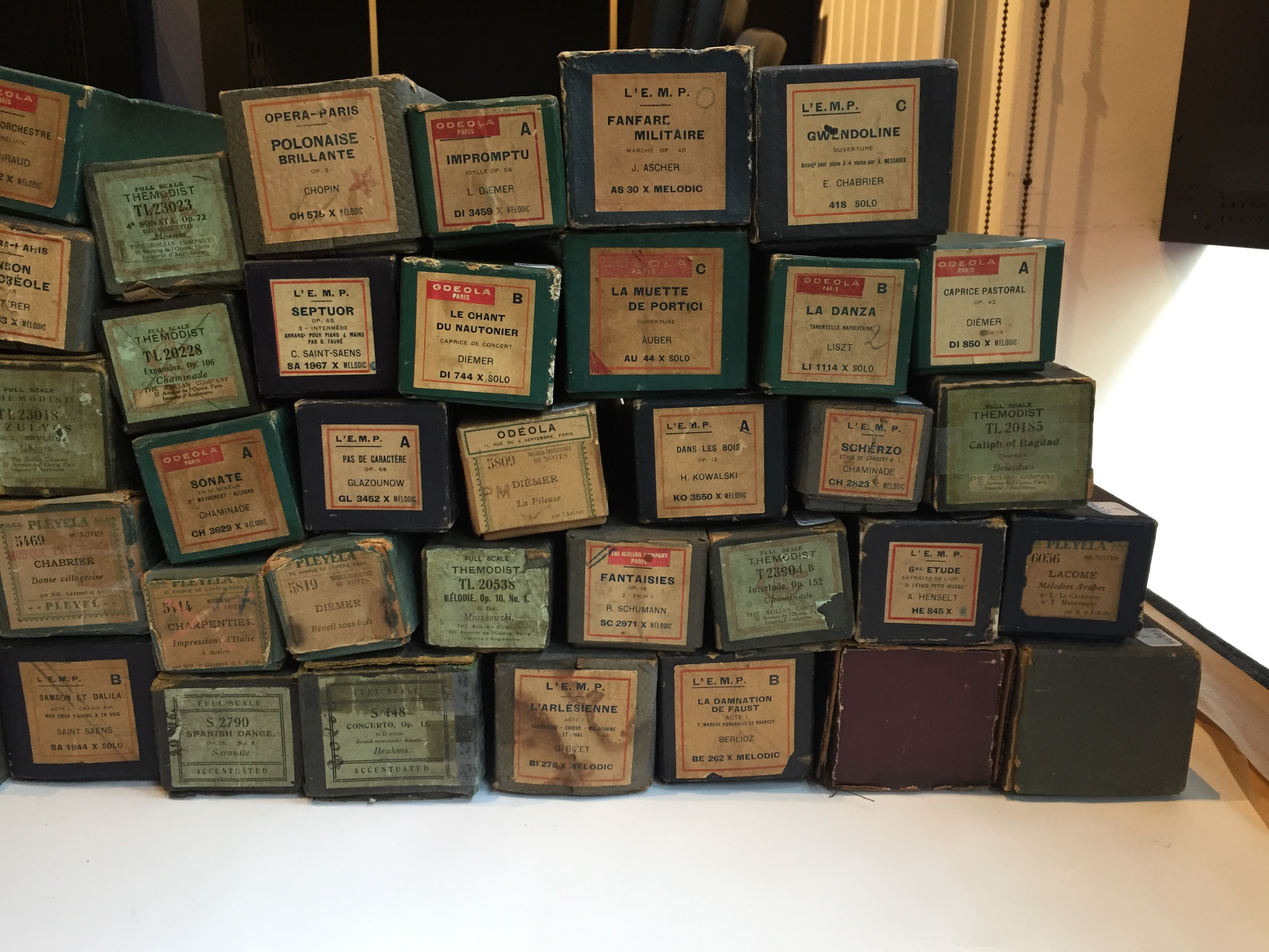 Important lot de 40 rouleaux pour piano pneumatique.