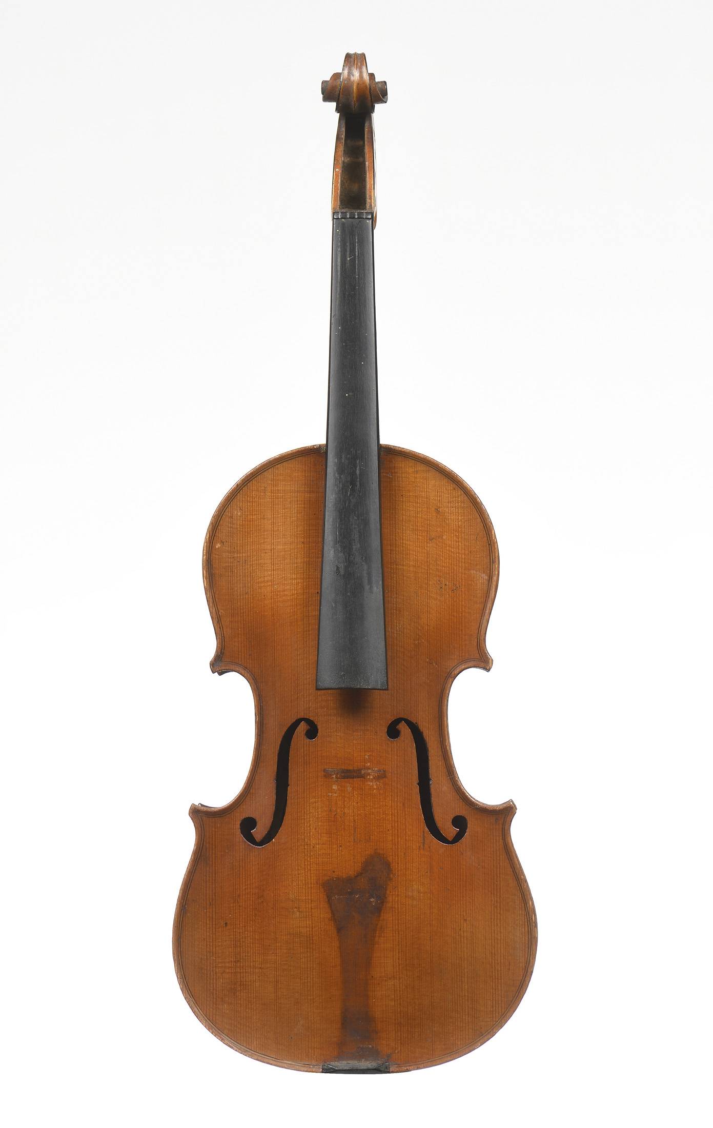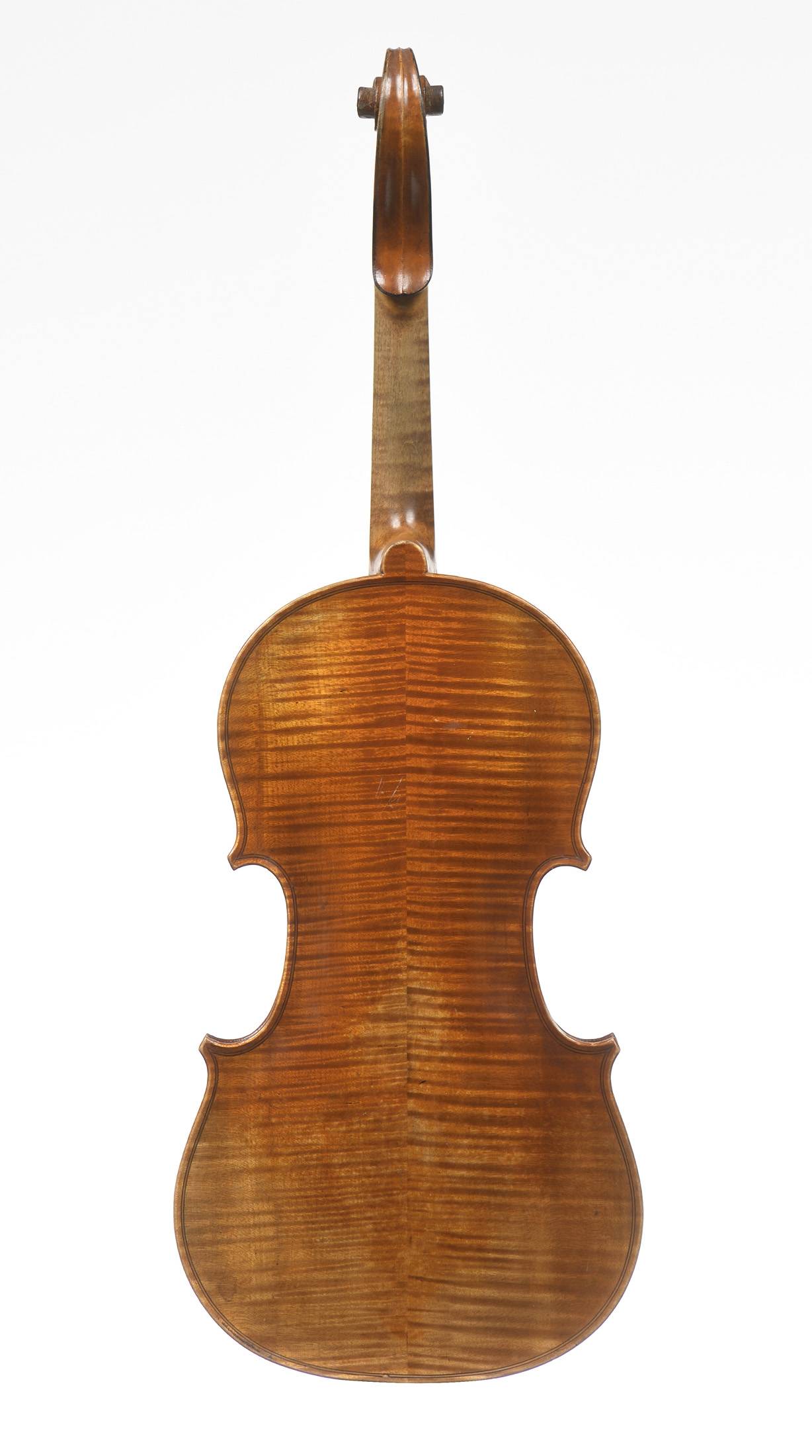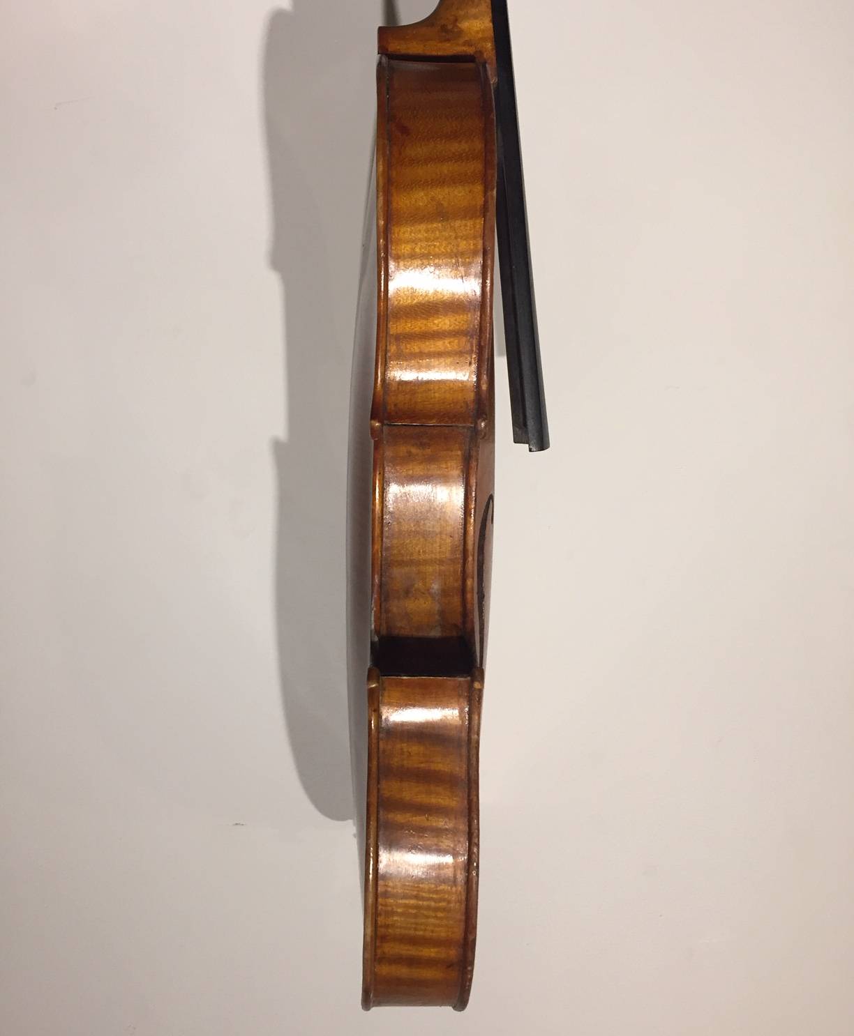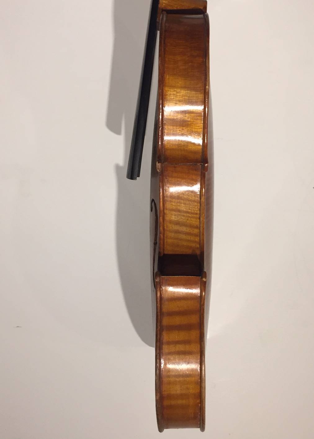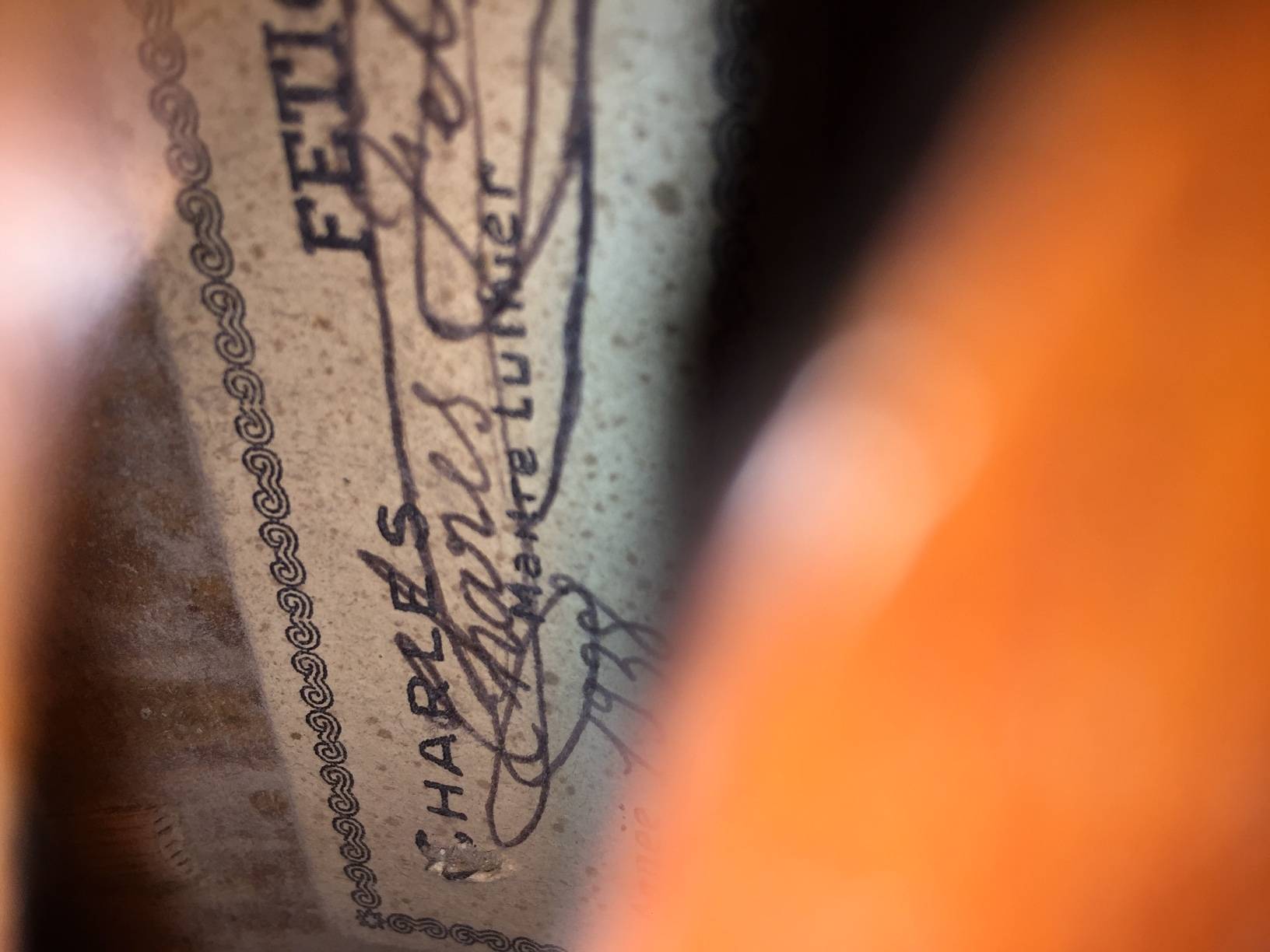 dont il porte l'étiquette " Charles FETIQUE... Année 1938. N°96. Maitre luthier". Fond de deux pièces en érable.Vernis brun orangé sur fond doré. 358 mm.