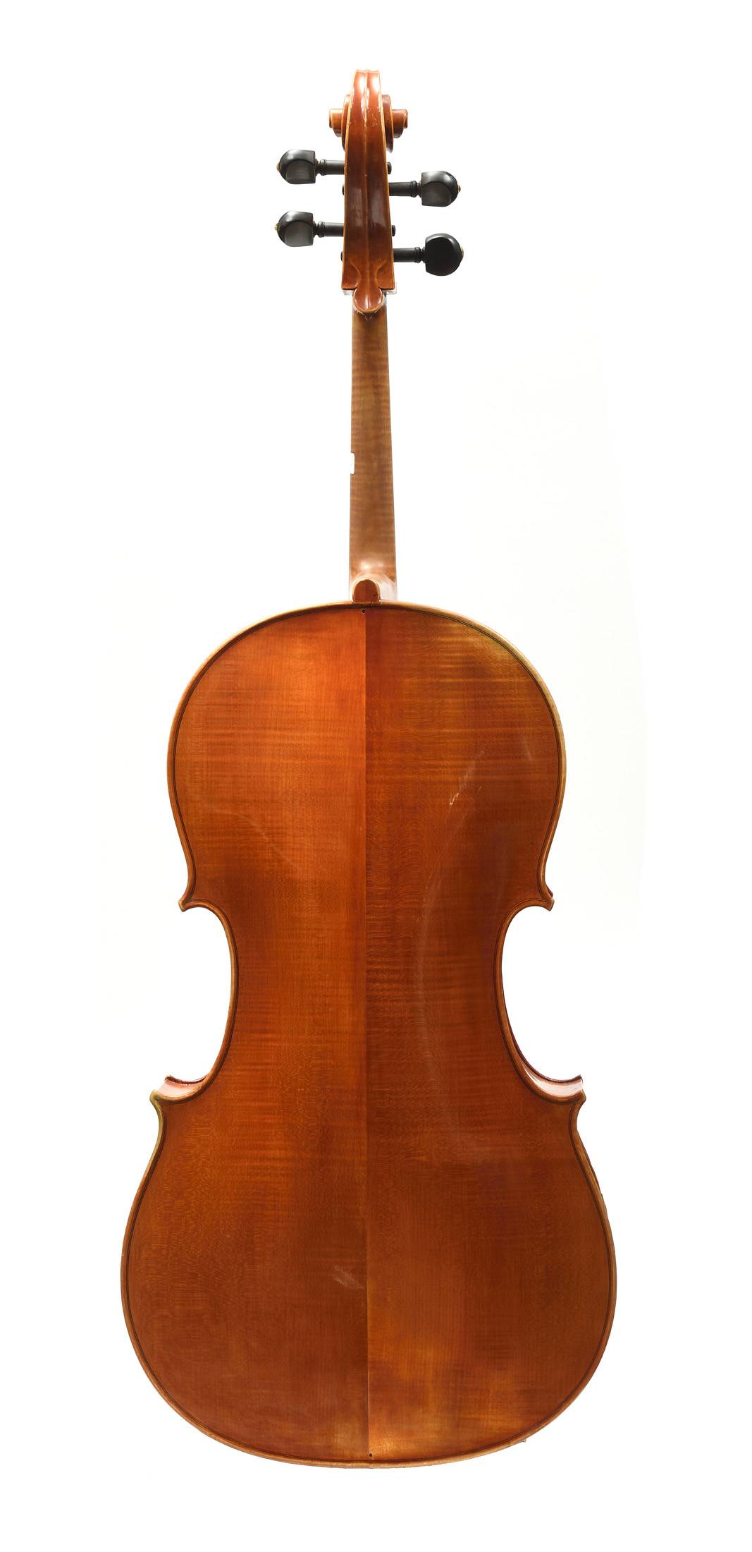 Modern cello probably Italian bearing the label "Primavera CAPELLINI. Cremona 1977. Modelo Stradivari". Sold as is.