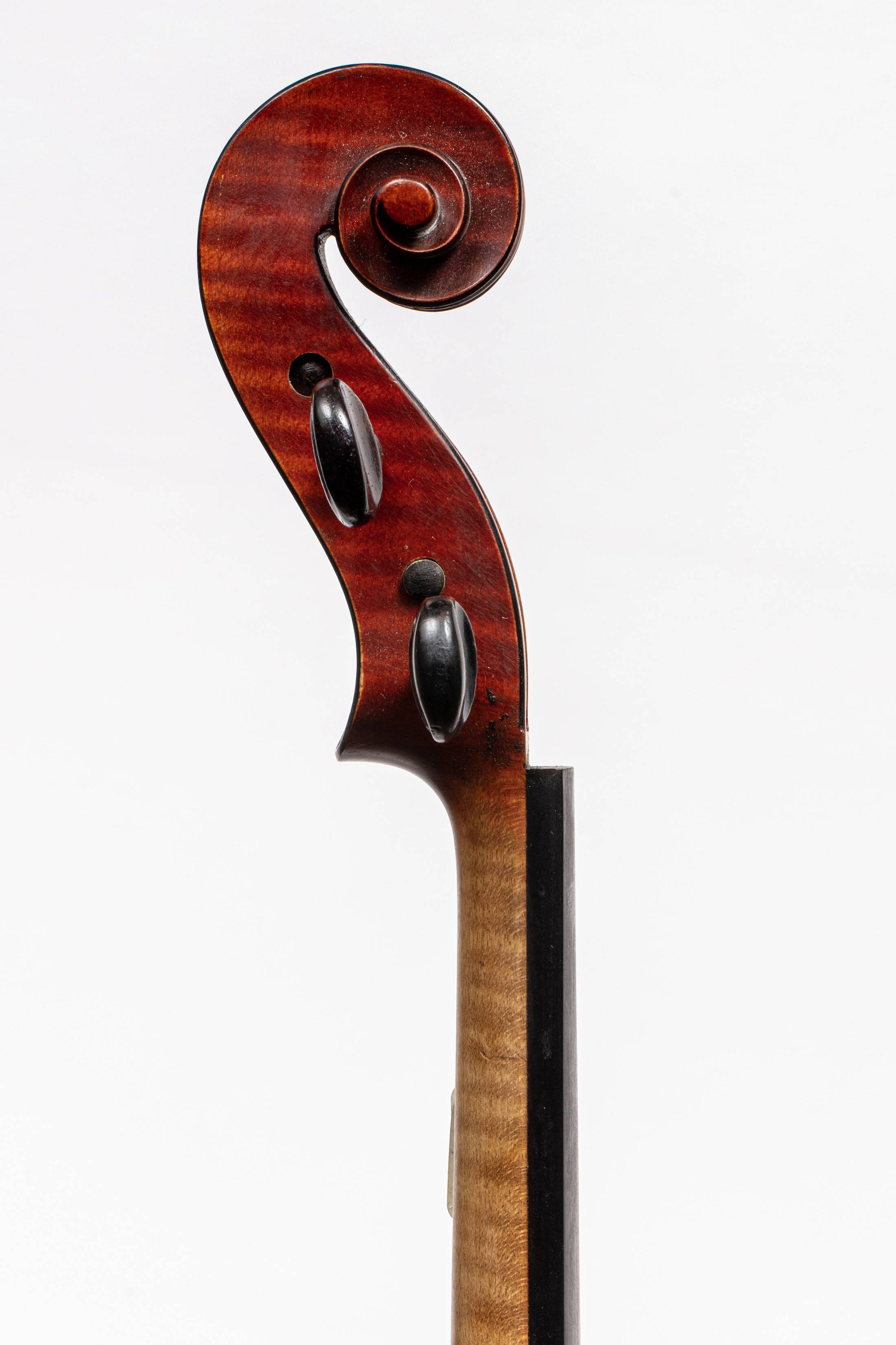 Fond de deux pièces en érable. Vernis brun rouge. Avec archet. 355 mm.
