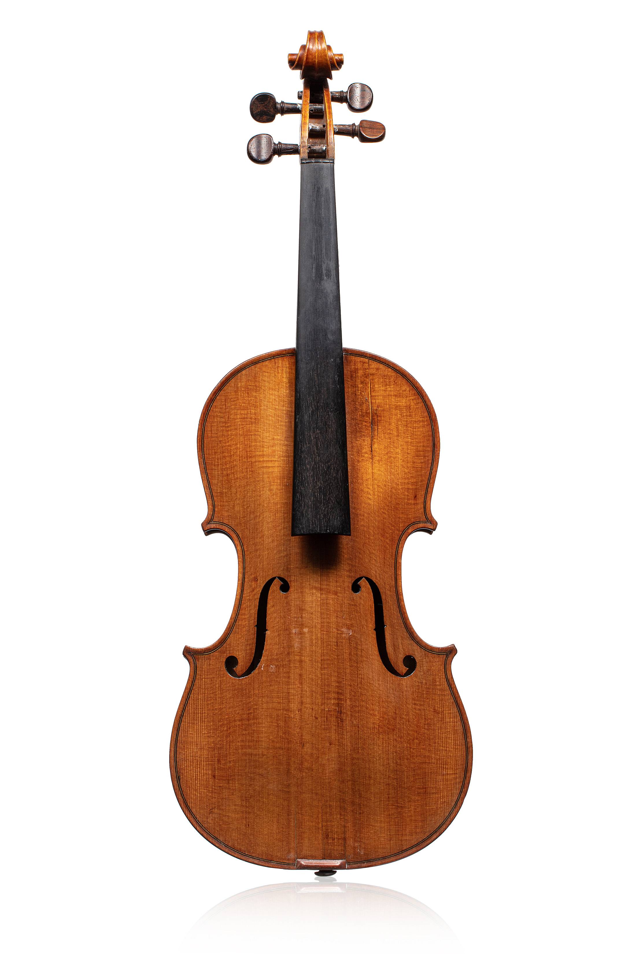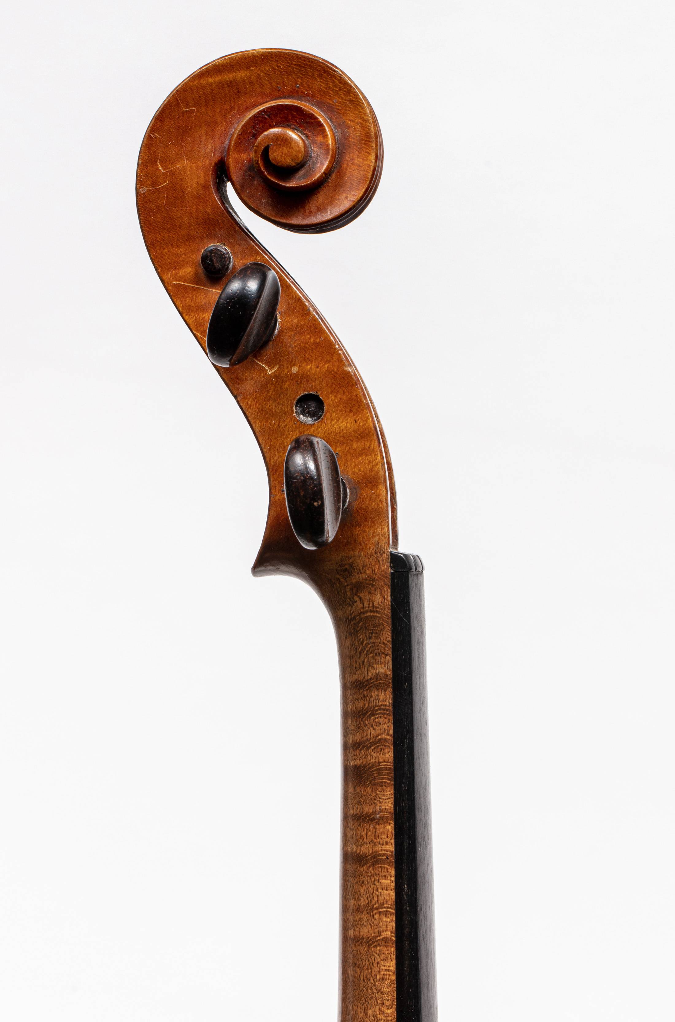 portant une étiquette apocryphe "Gustavo...?". Fond de deux pièces en érable. Vernis brun doré. Diverses cassures de table.