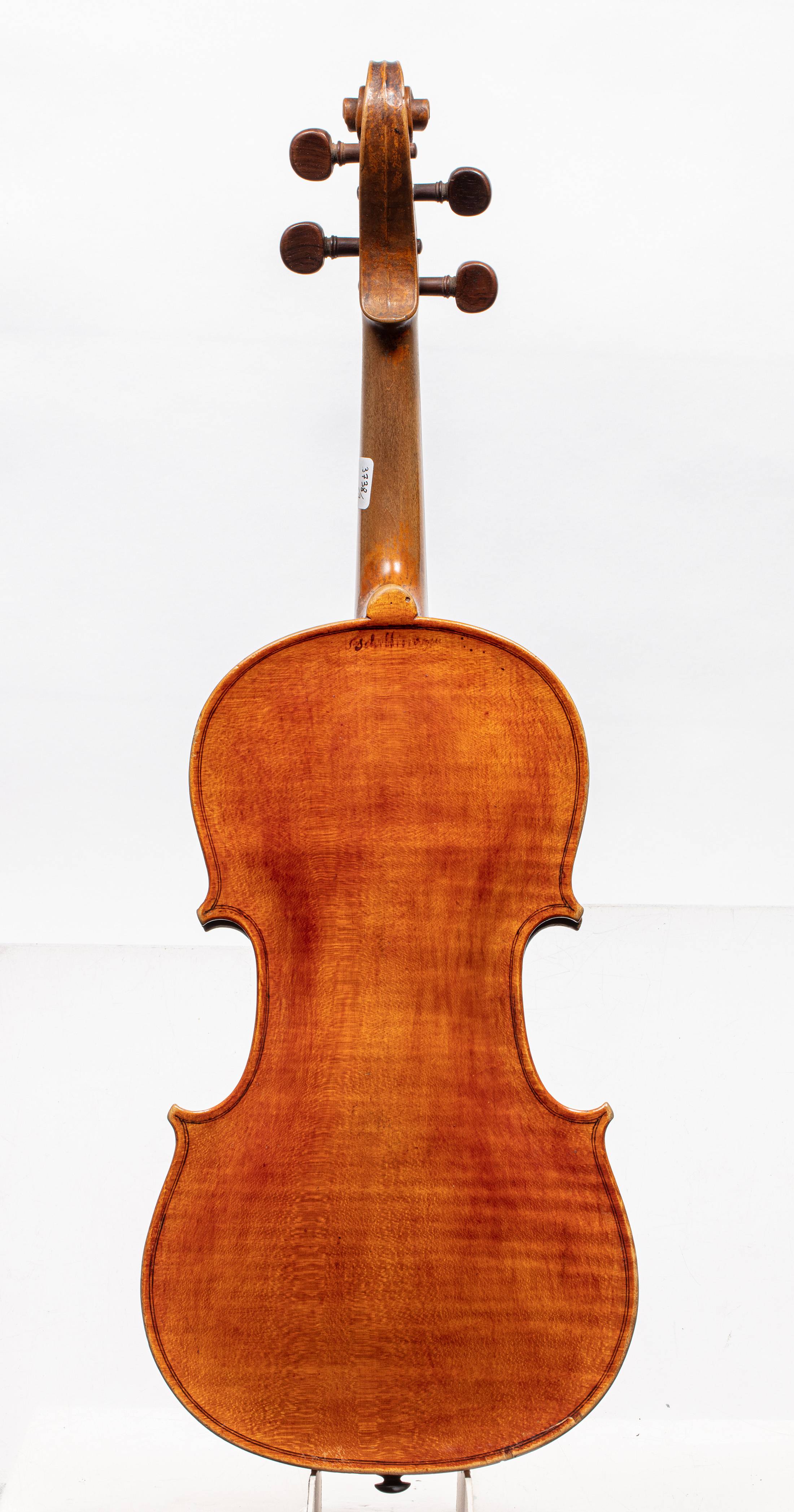 German violin bearing a signature on the back.