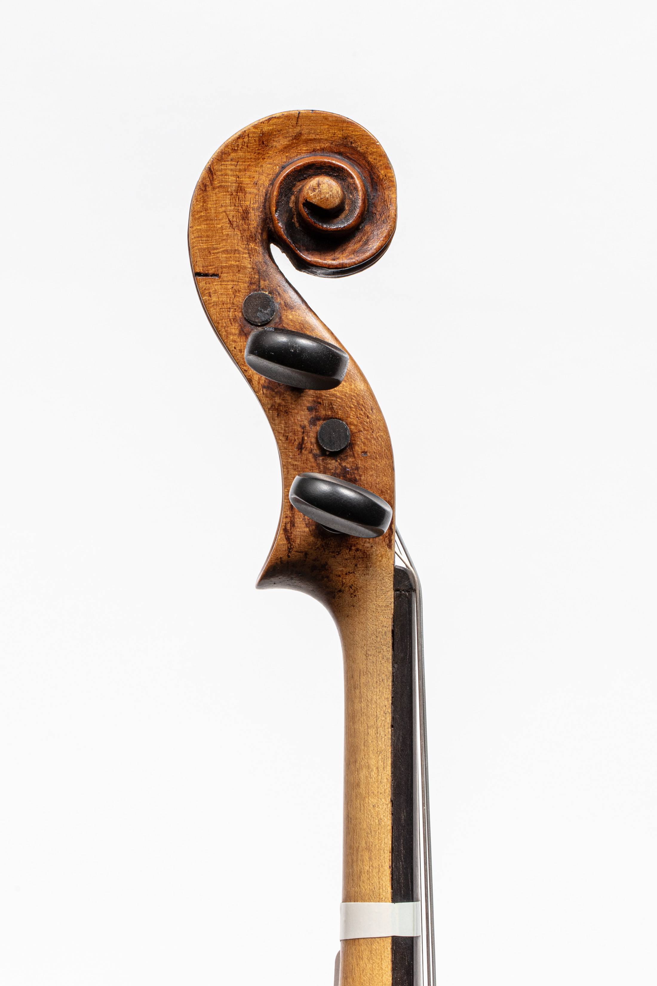 portant une étiquette apocryphe " Sebastian Kloz... 1746". Fond d'une pièce. Sans filetage. Diverses usures et cassures. 342 mm. Avec boite moderne et archet.