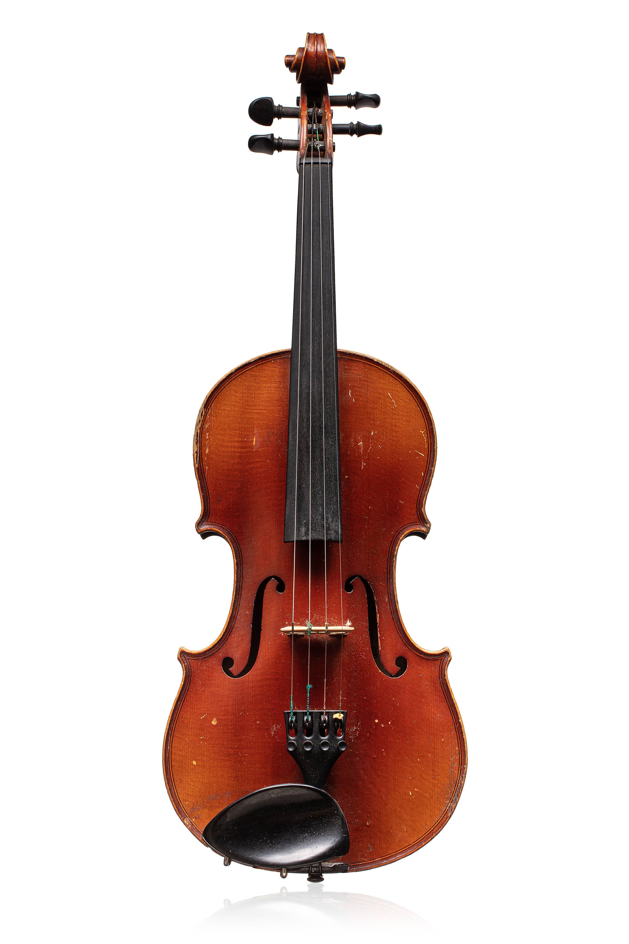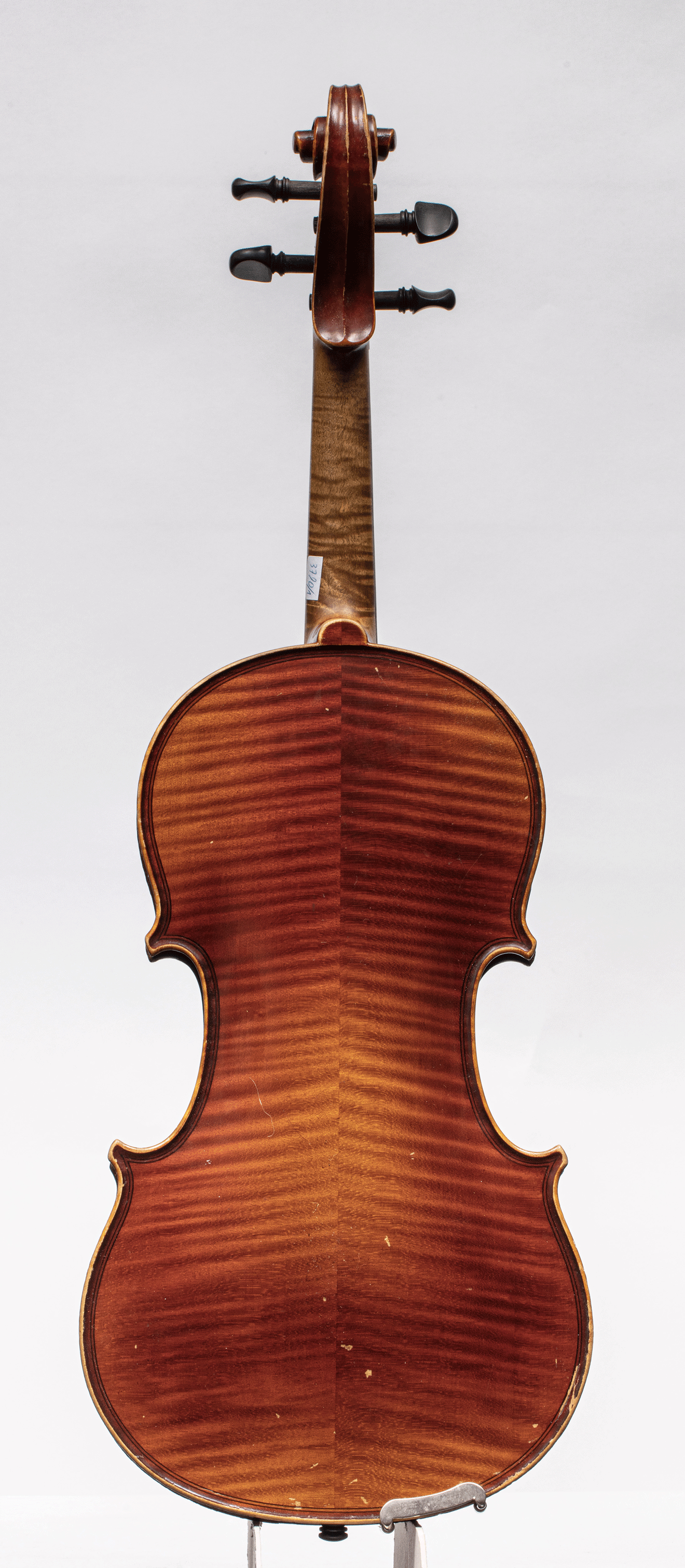 portant une étiquette "Hans Muller..1730". Instrument Bohémien. Vernis brun rouge sur fond doré. 362 mm. avec boite et archet.
