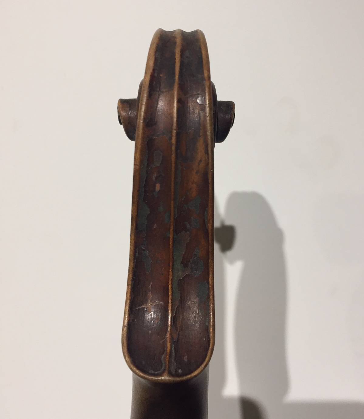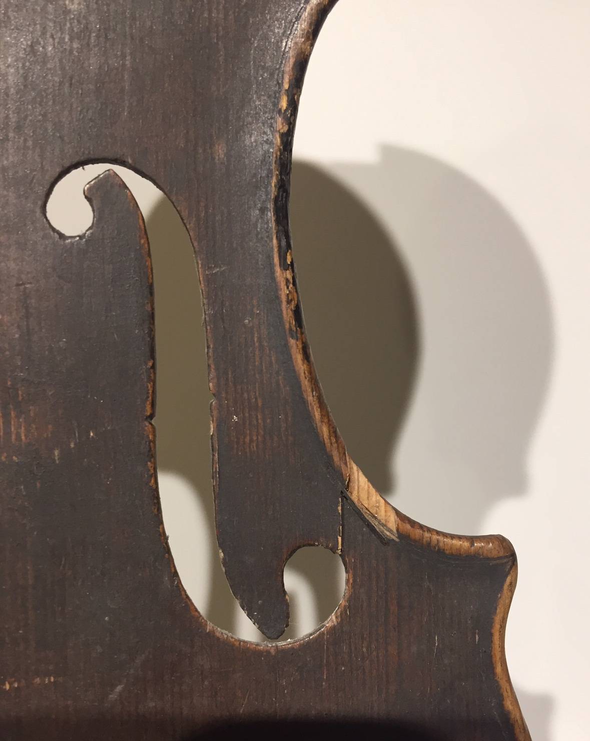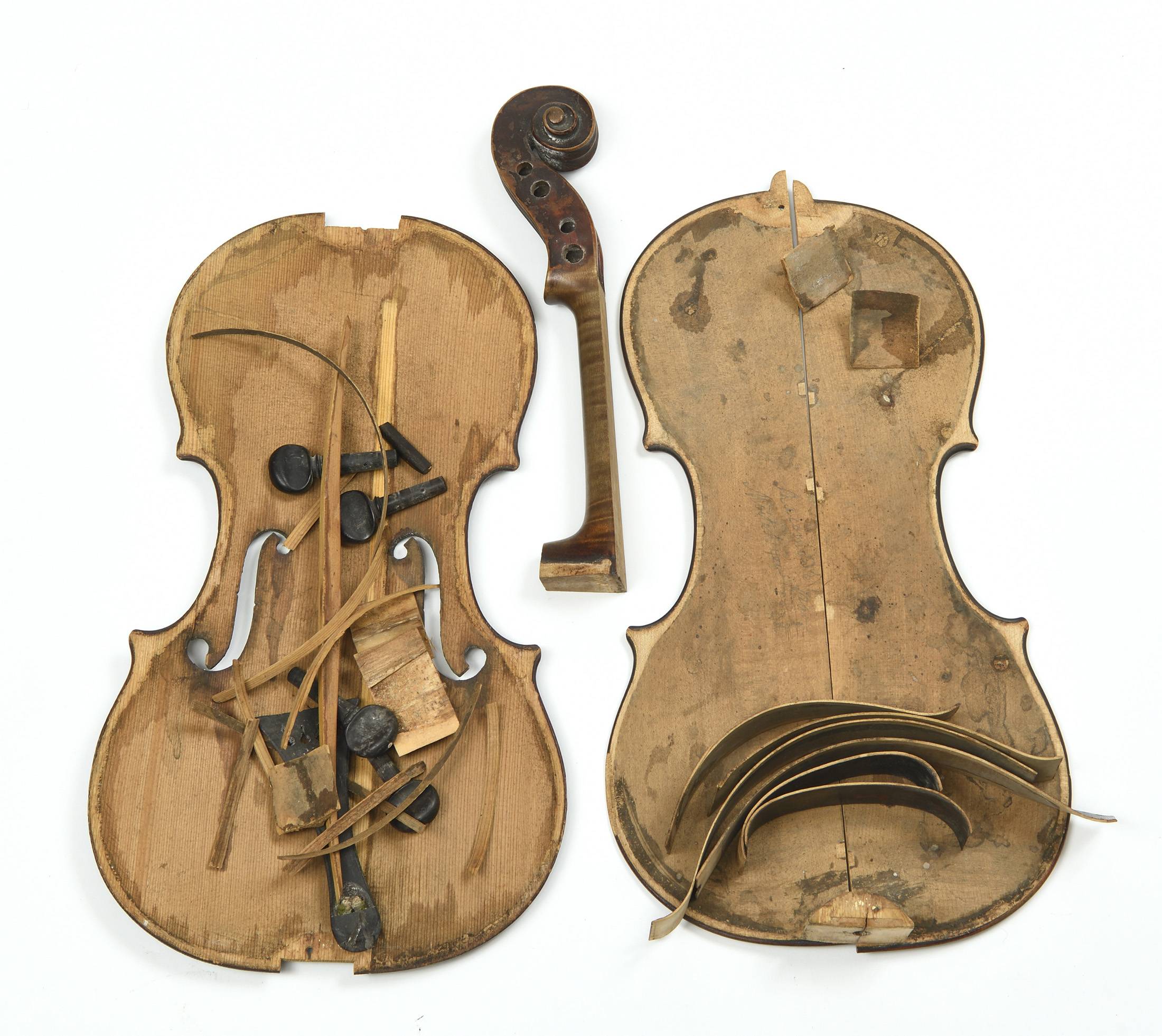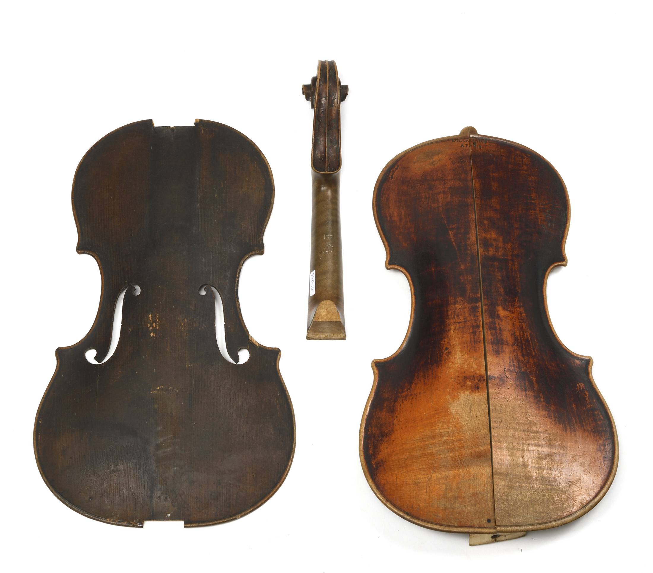 portant une marque au fer "HARMAND A PARIS". Fond de deux pièces en érable. Instrument en pièce détachée. L'ensemble est à restaurer. En l'état.