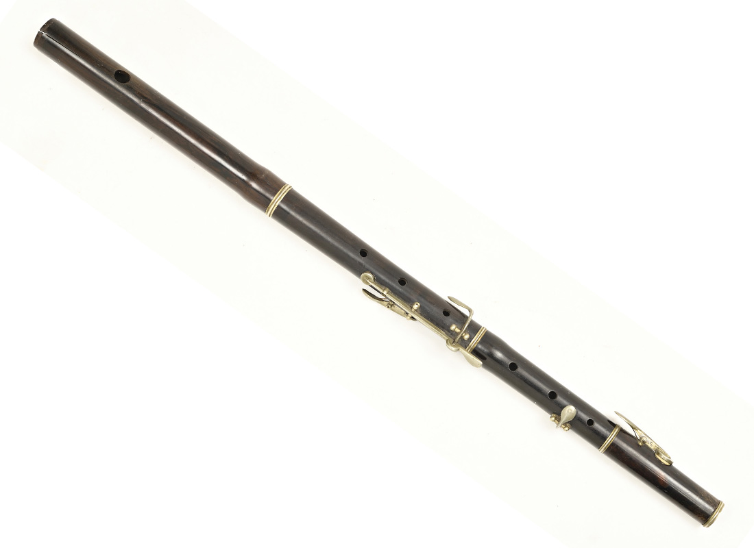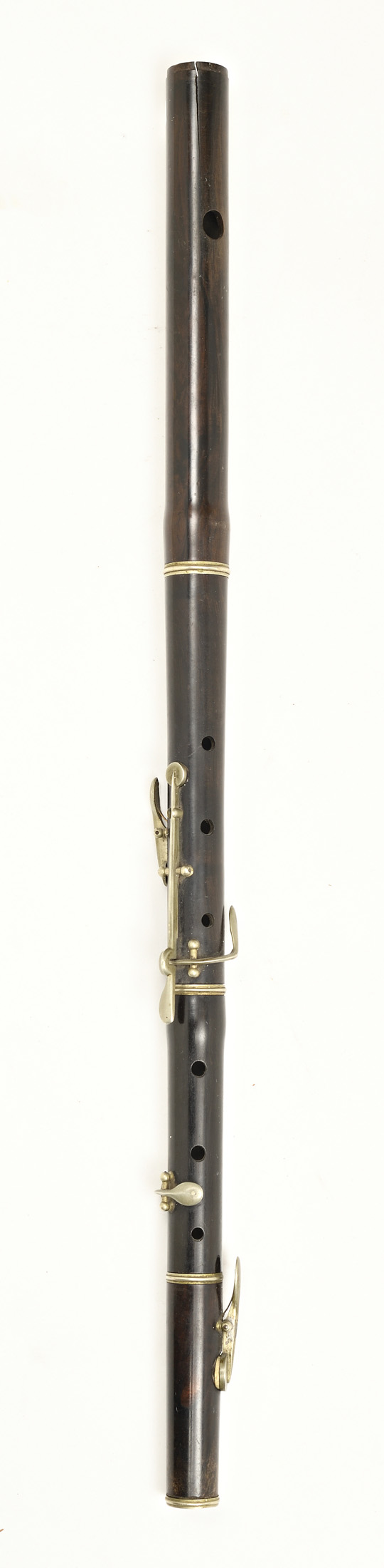 En bois d'ébène. 5 clefs maillechort. Manque le bouchon et le bonnet. A restaurer.