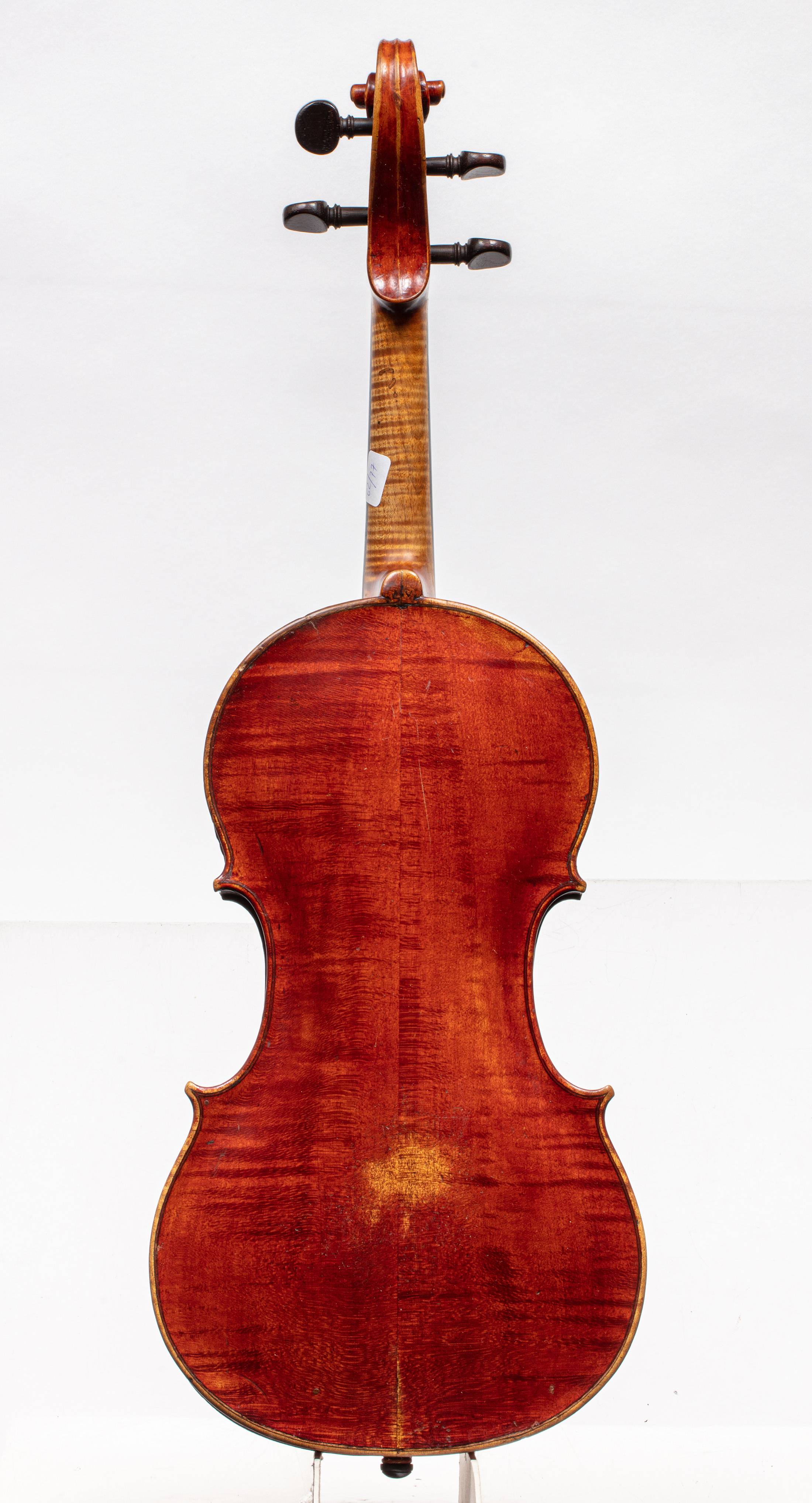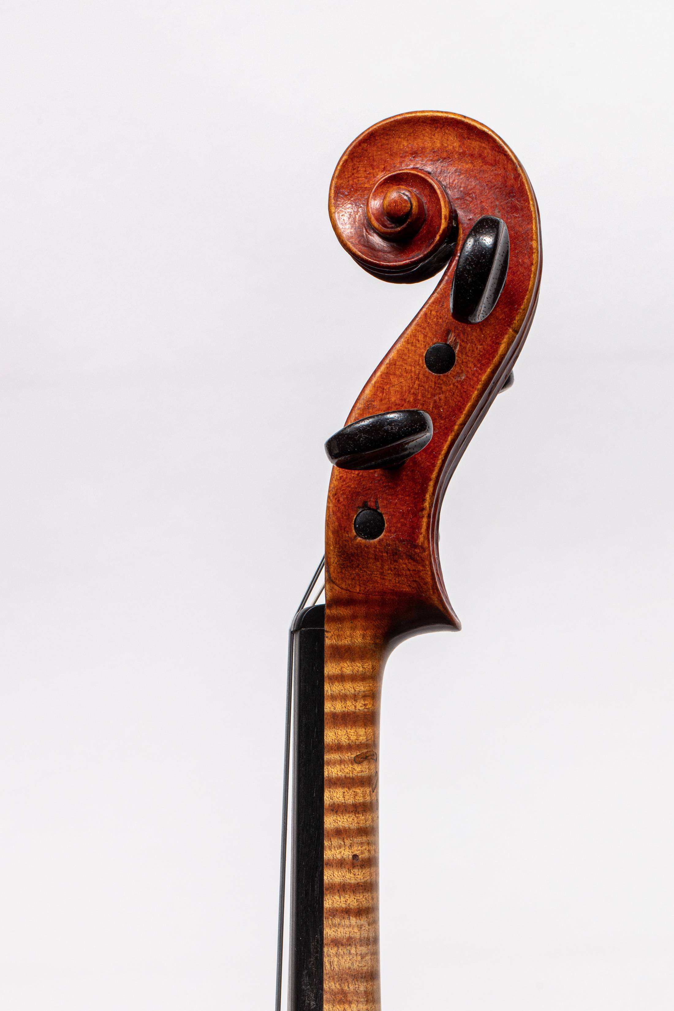 Intéressant Instrument Parisien probablement fait par Joseph GAFFINO, fait vers 1740-1750. Fond de deux pièces en érable. Vernis brun rouge. Table en épicéa. Diverses restaurations. 357 mm.