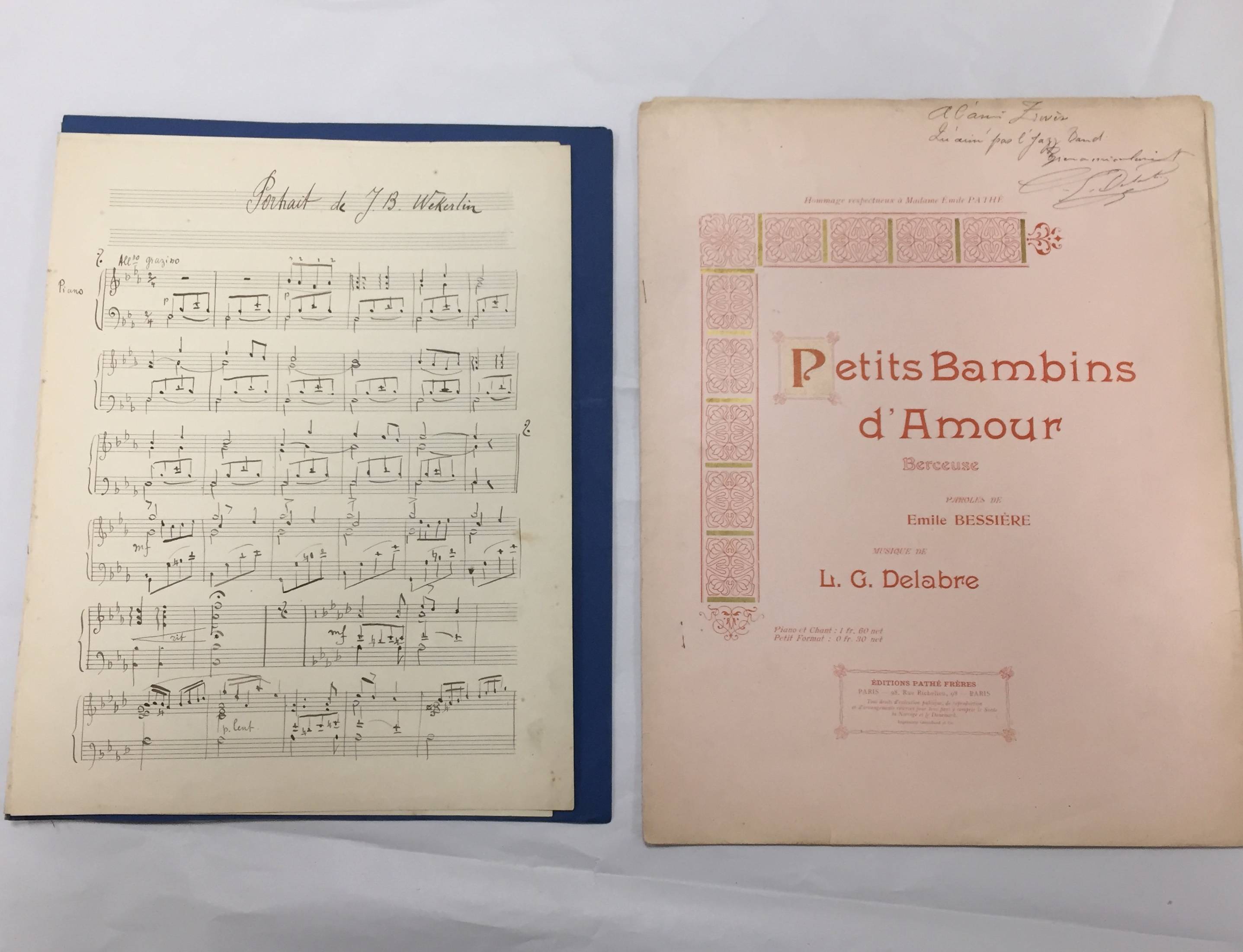 - Petits Bambins d'Amour. Berceuse. Paroles de Emile Bessière. Musique de L.G DELABRE. Portant une dédicace.
