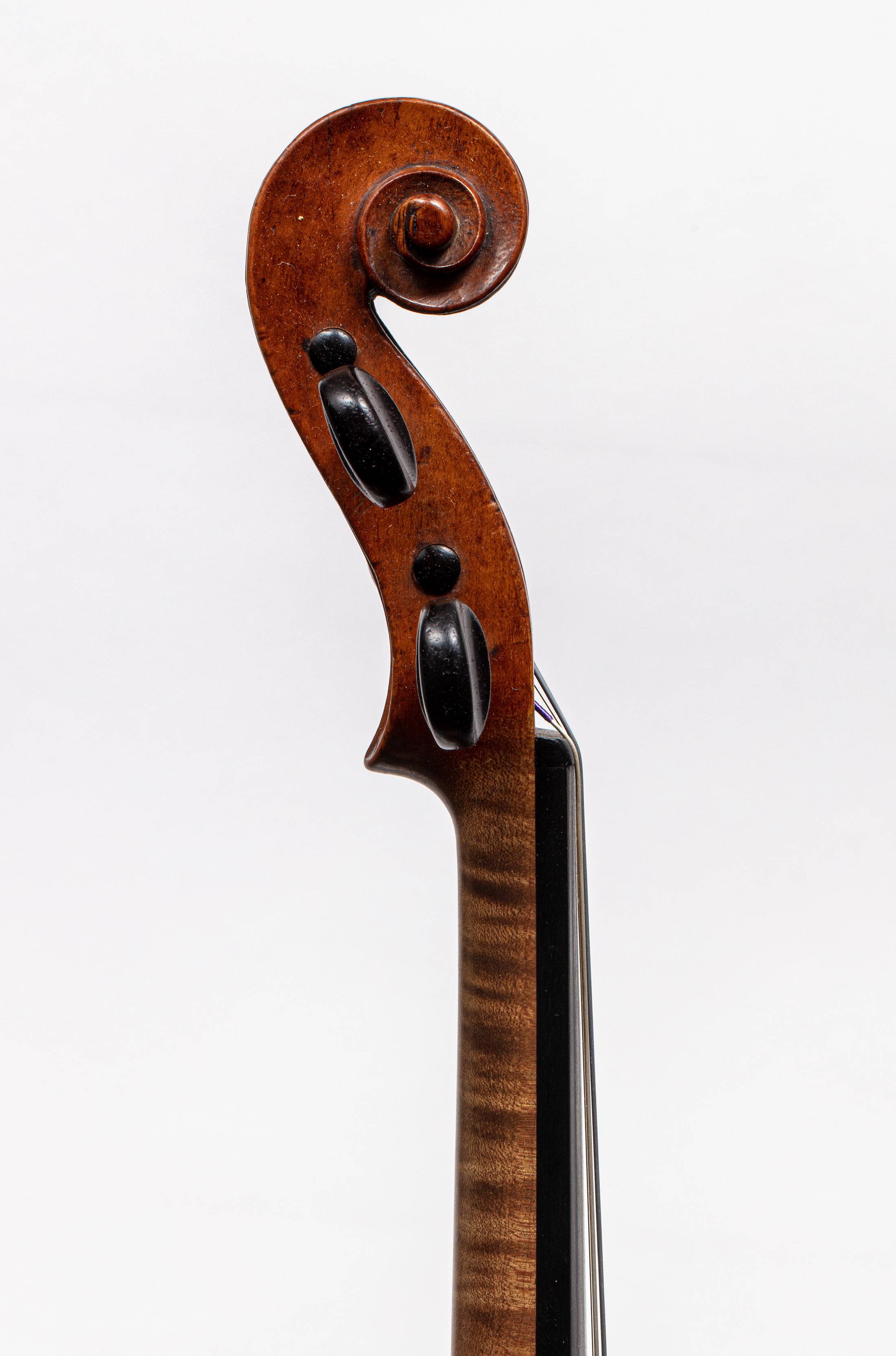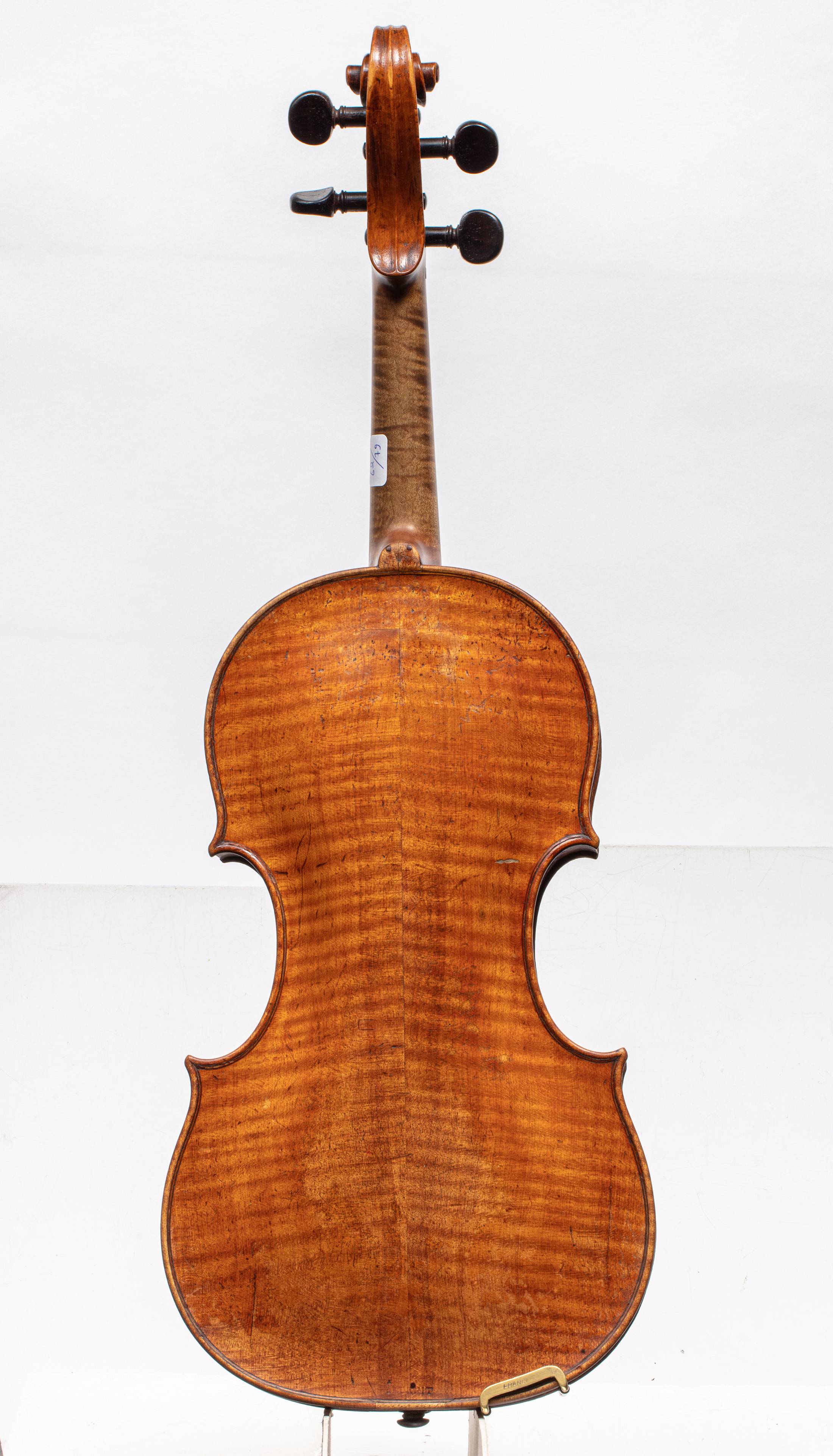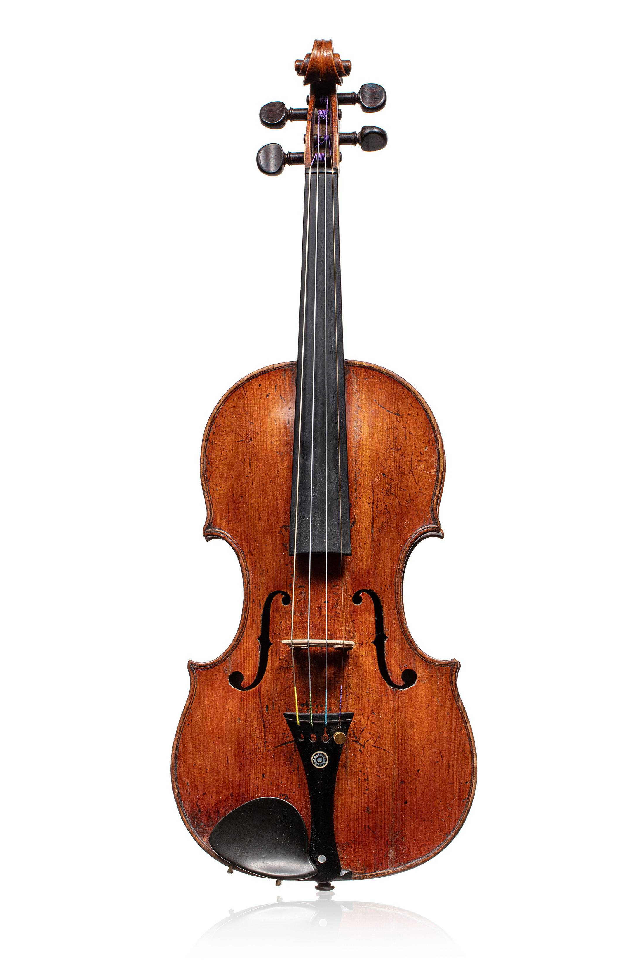 Intéressant violon XVIIIe Parisien, portant une étiquette " Ferdinantus Gagliani, me fecti Néapoli Anno 17?". Fond de deux pièces en érable. Vernis brun doré. Table en épicéa. Diverses cassures dont une à l'âme, traces de vers. 356 mm. Une pièce à la table, et au fond.