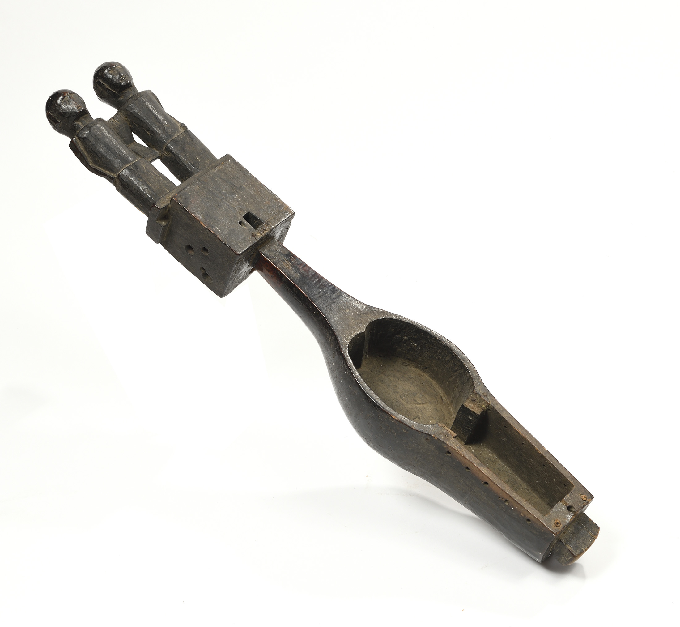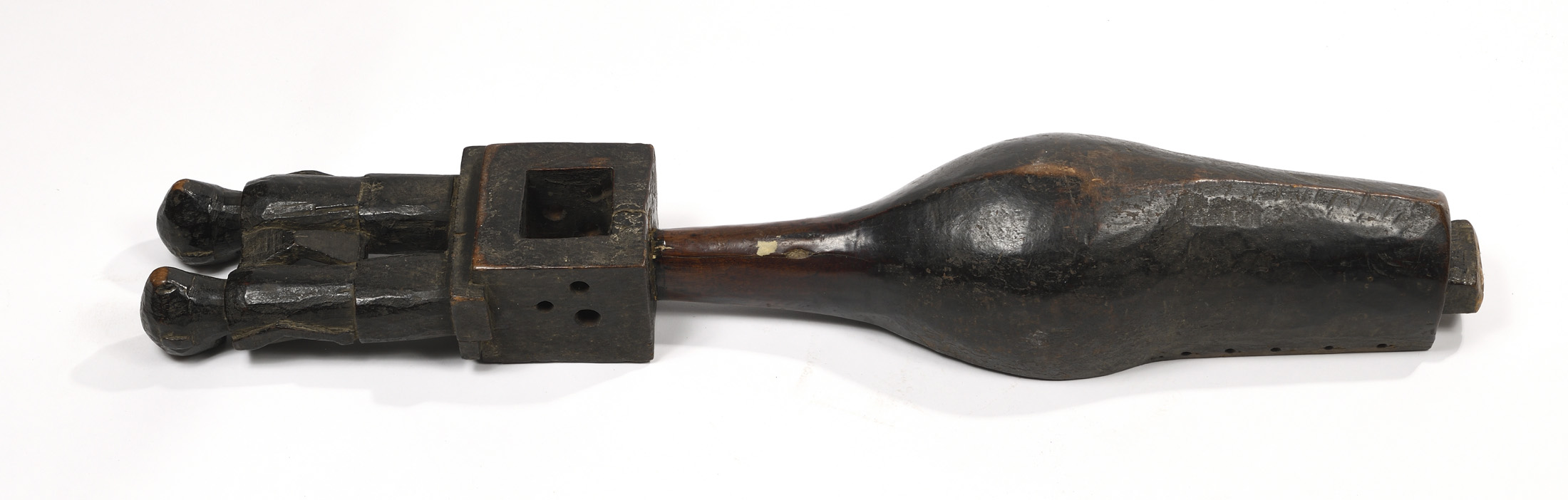 Harpe SARANGUI à deux personnages. Bois, ancienne patine d'usage brune.