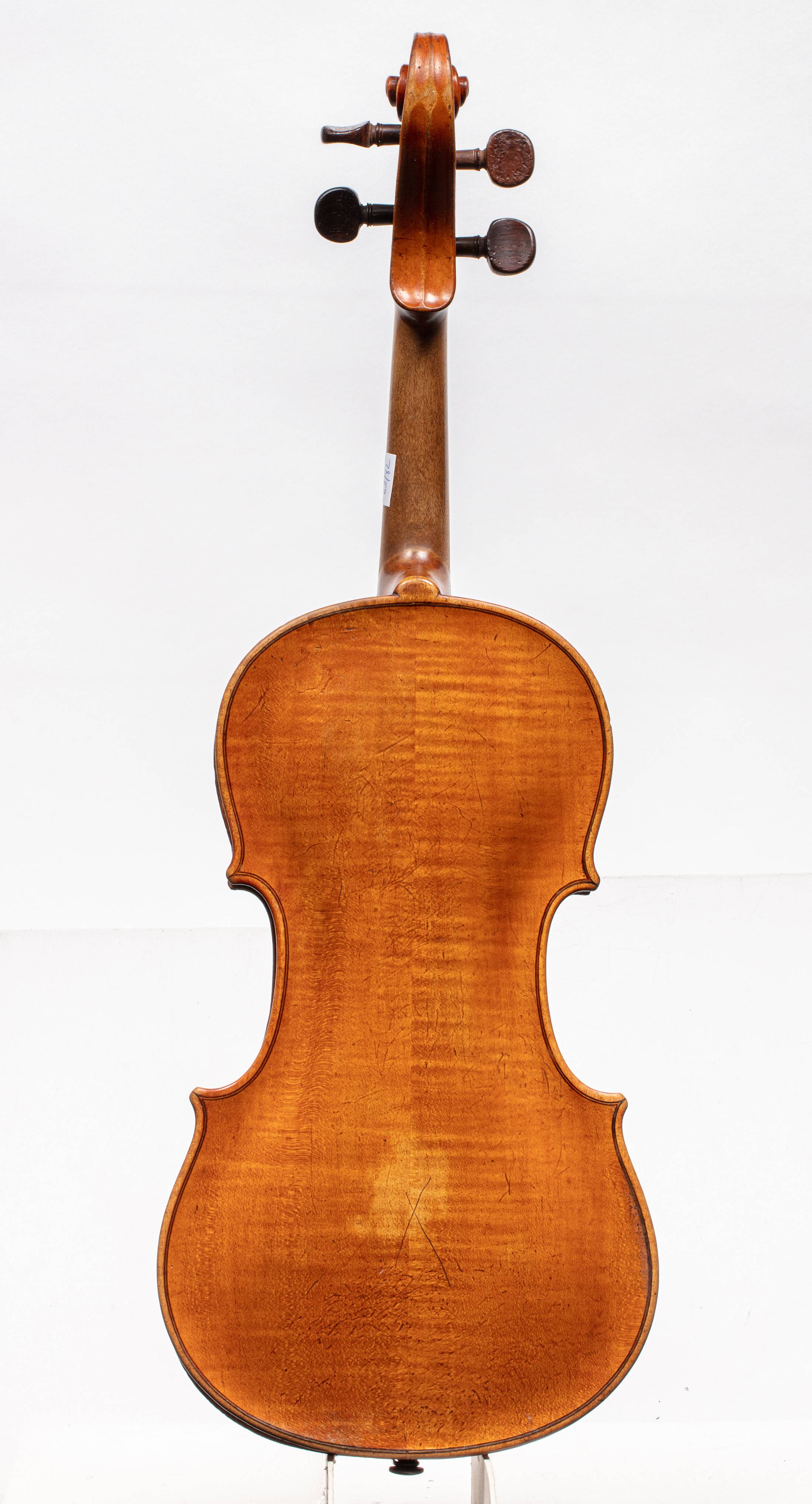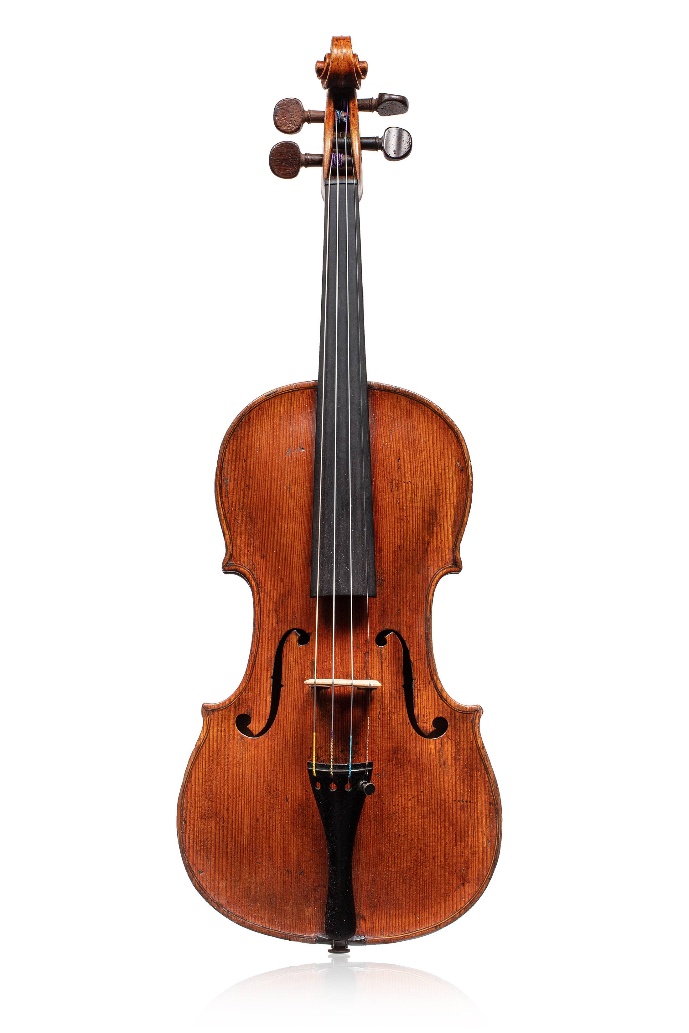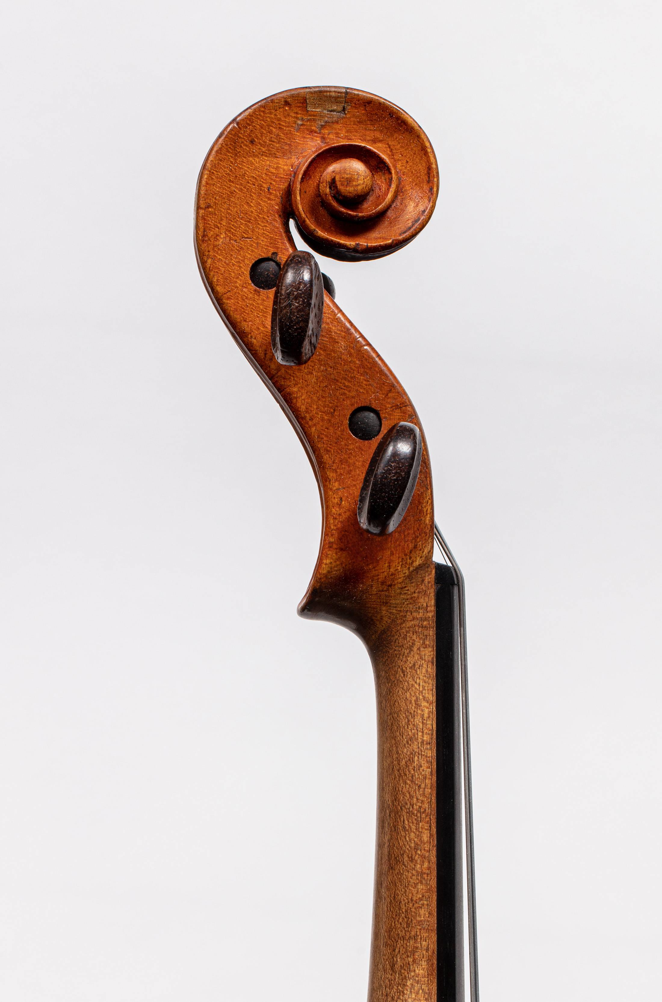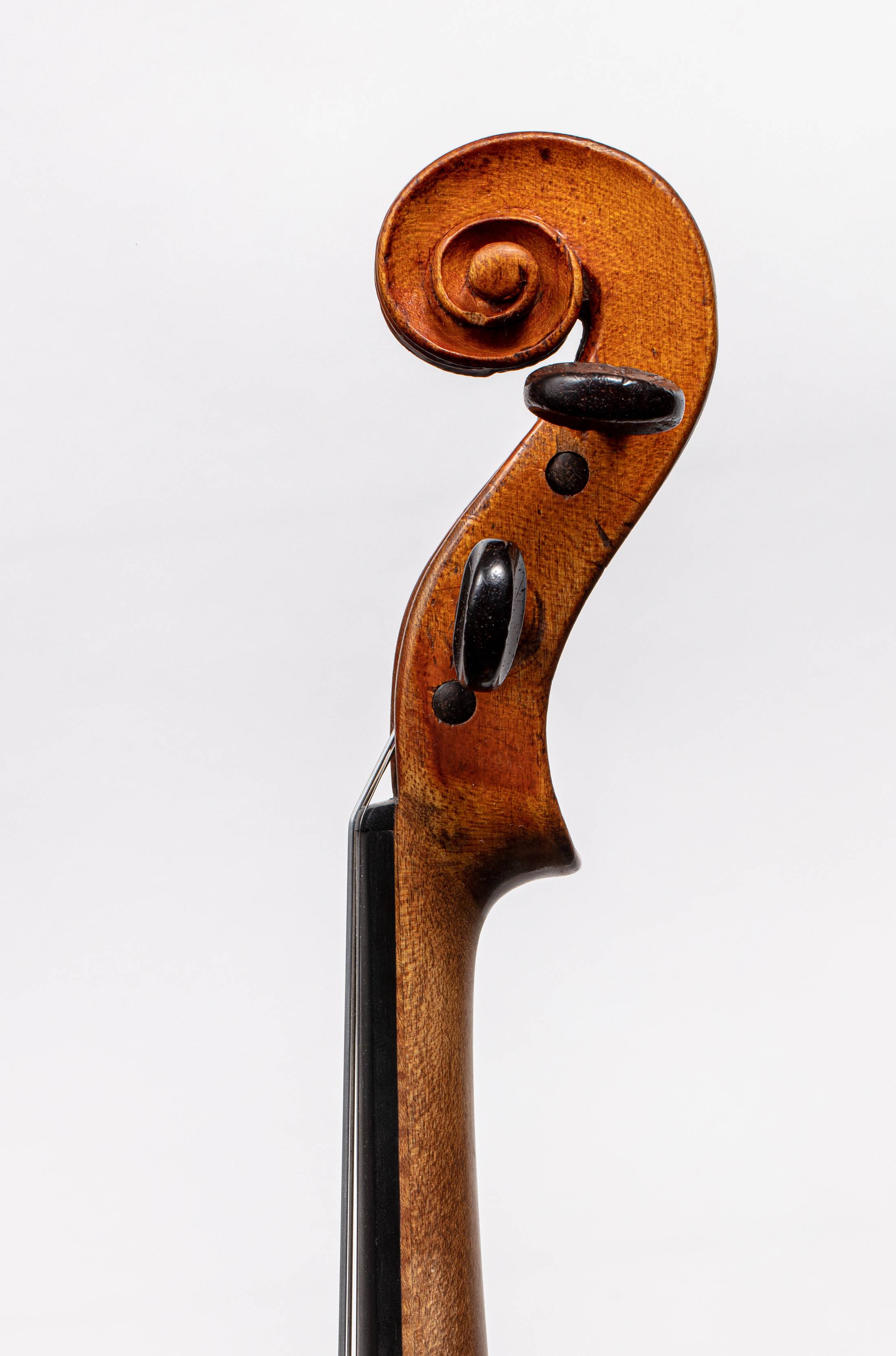 Instrument baroque fait en deuxième partie du XVIIIe d'origine. Fond de deux pièces aux ondes légères. Vernis brun doré. Diverses cassures restaurées. 356 mm
