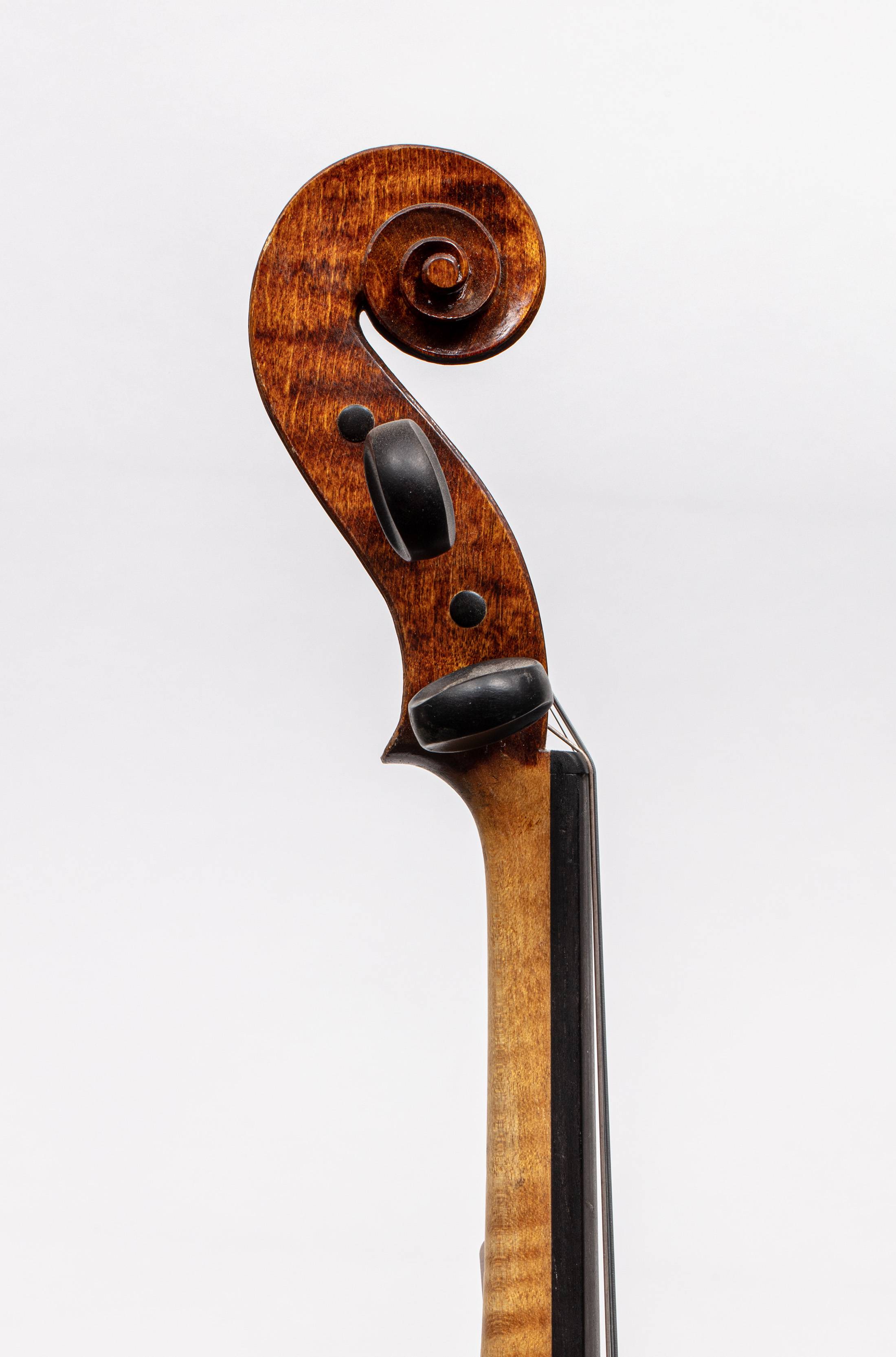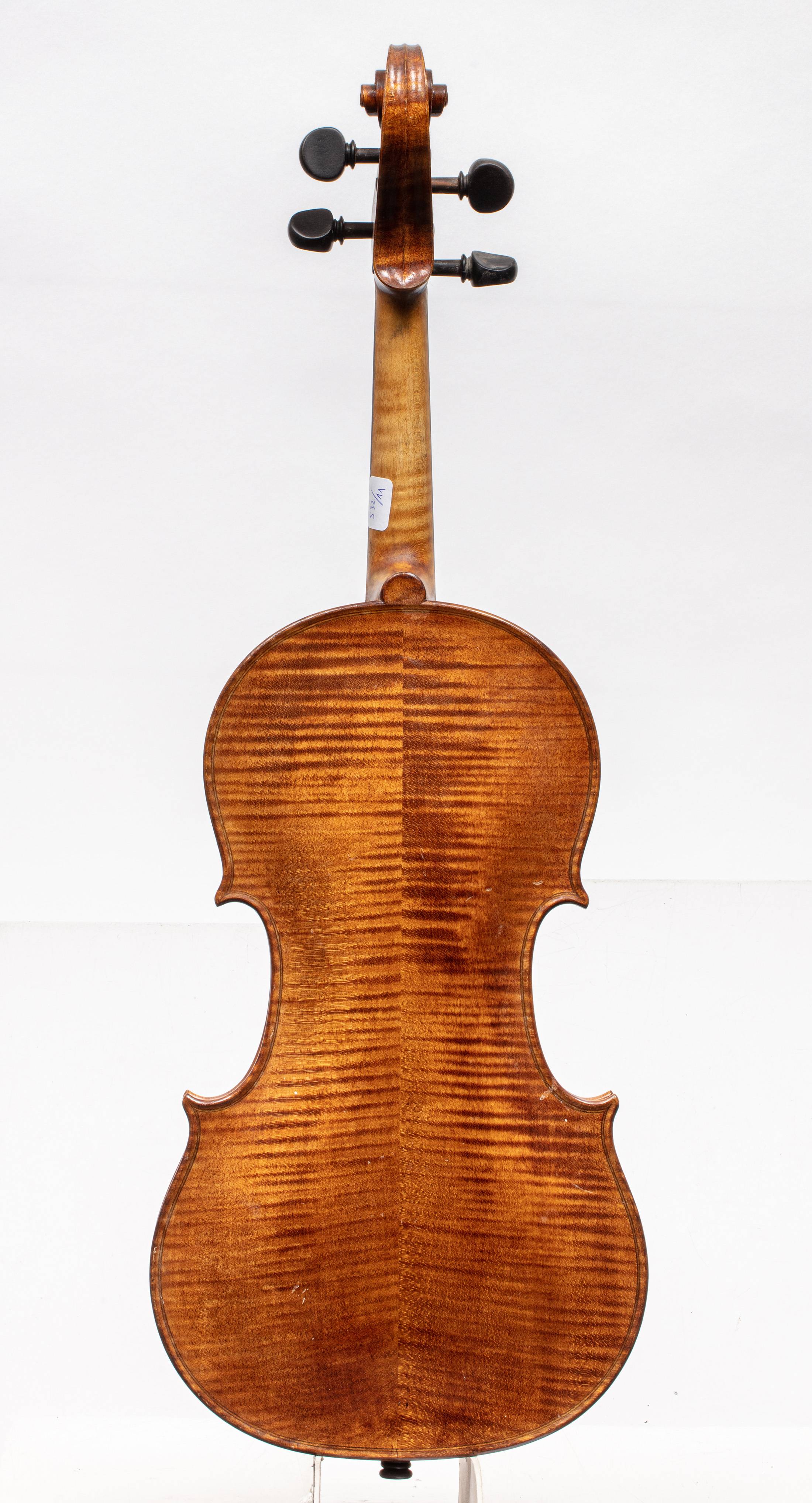 Instrument moderne portant une étiquette "Made in France. 2001. Thomas PAGES". Fond de deux pièces en érable. Vernis brun doré. 357 mm.