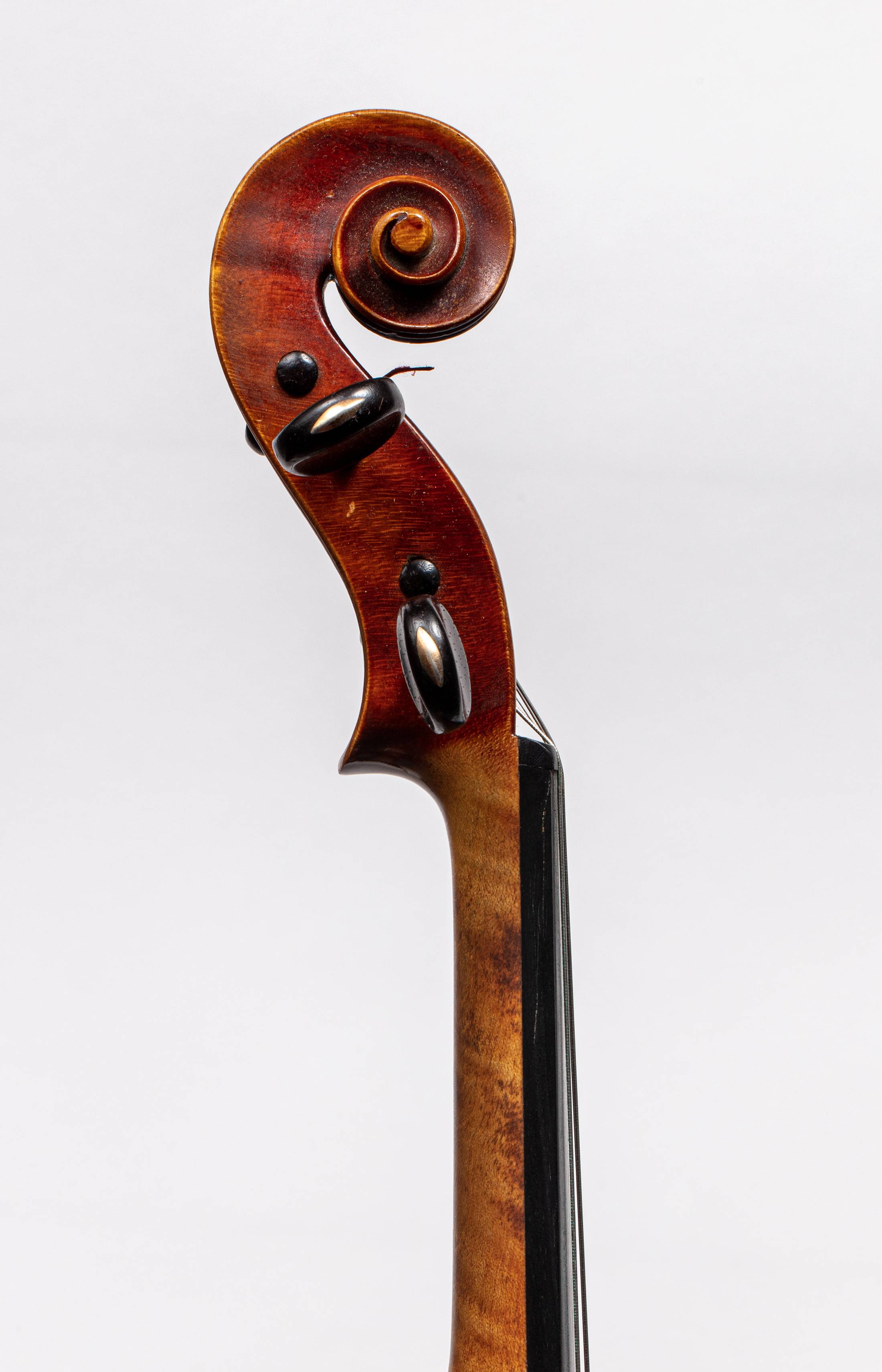 dont il porte l'étiquette originale "Amédée DIEUDONNE..." A la plume "N°754, Anno 1933." Signature manuscrite et double marques au fer. Fond d'une pièce en érable. Vernis orangé brun sur fond doré. Table en épicéa. 355 mm. Avec boite.