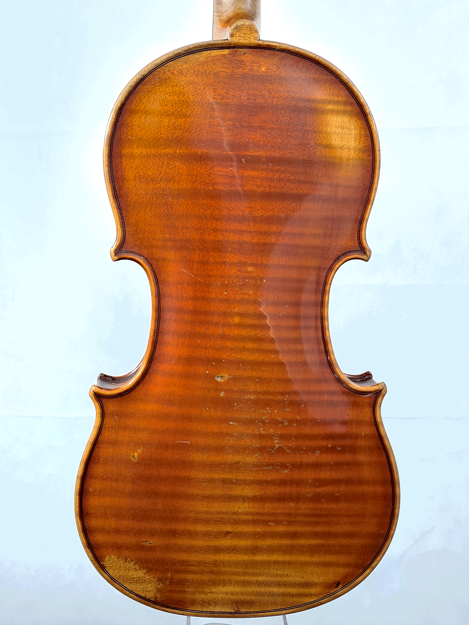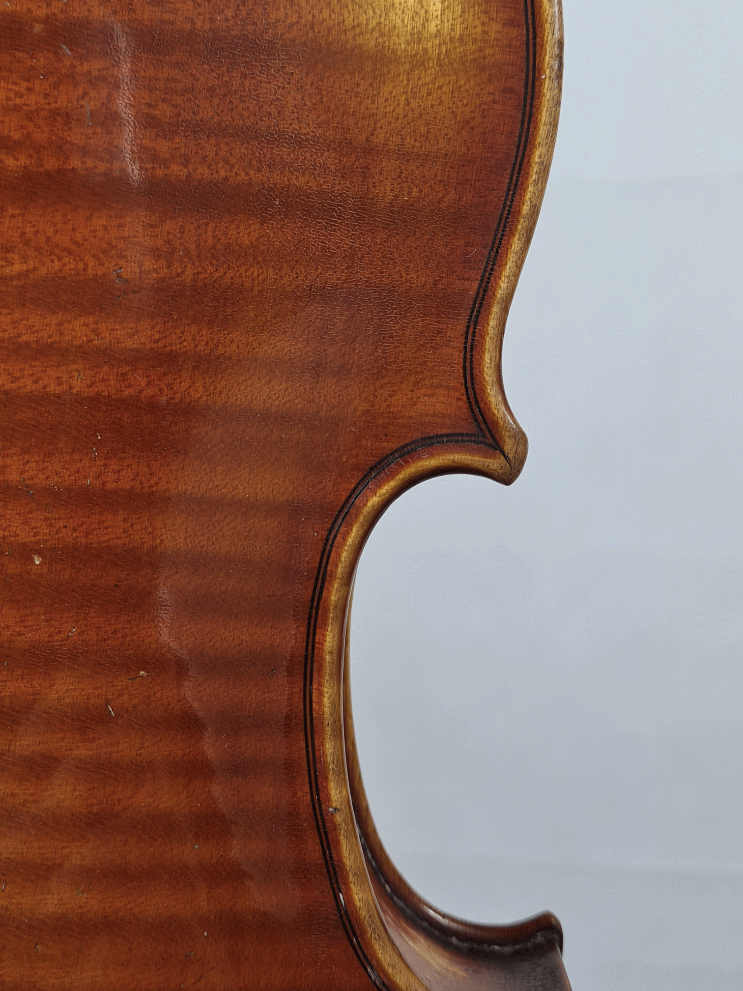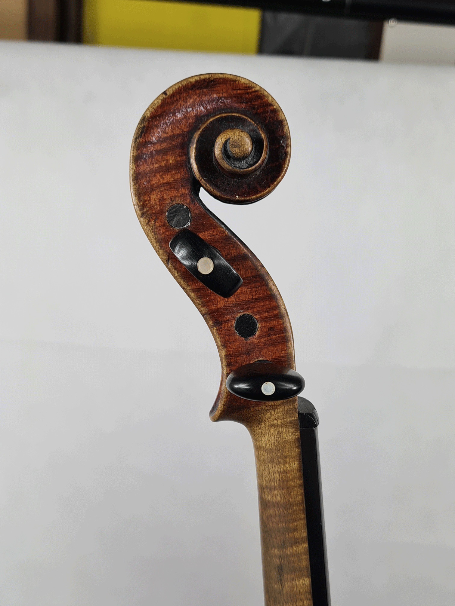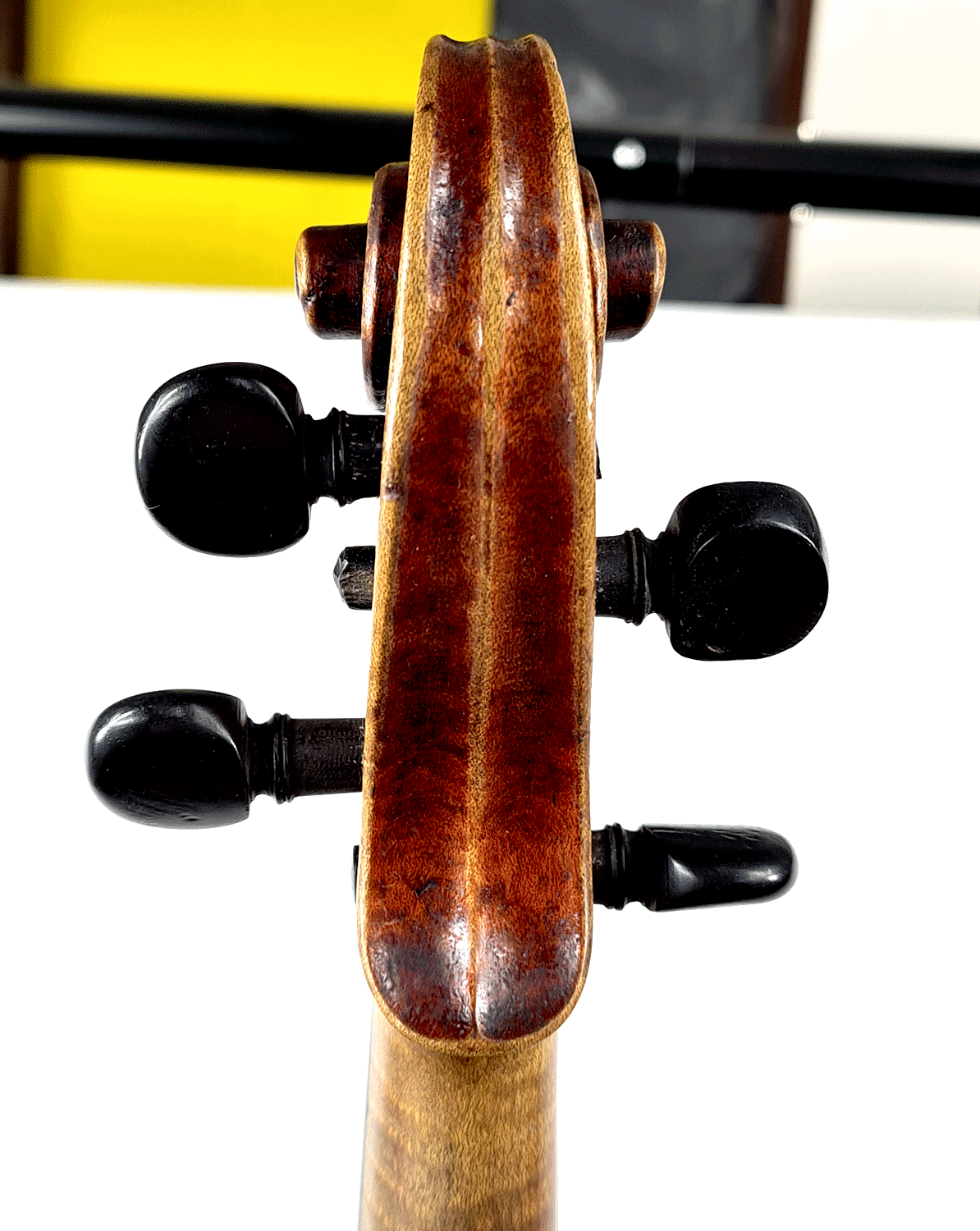portant une étiquette " Francisco LUPOT fecit in Orleano 1796.". Fond d'une pièce en érable. Vernis brun rouge sur fond doré. Diverses cassures, légères usures. Tête d'un autre auteur.