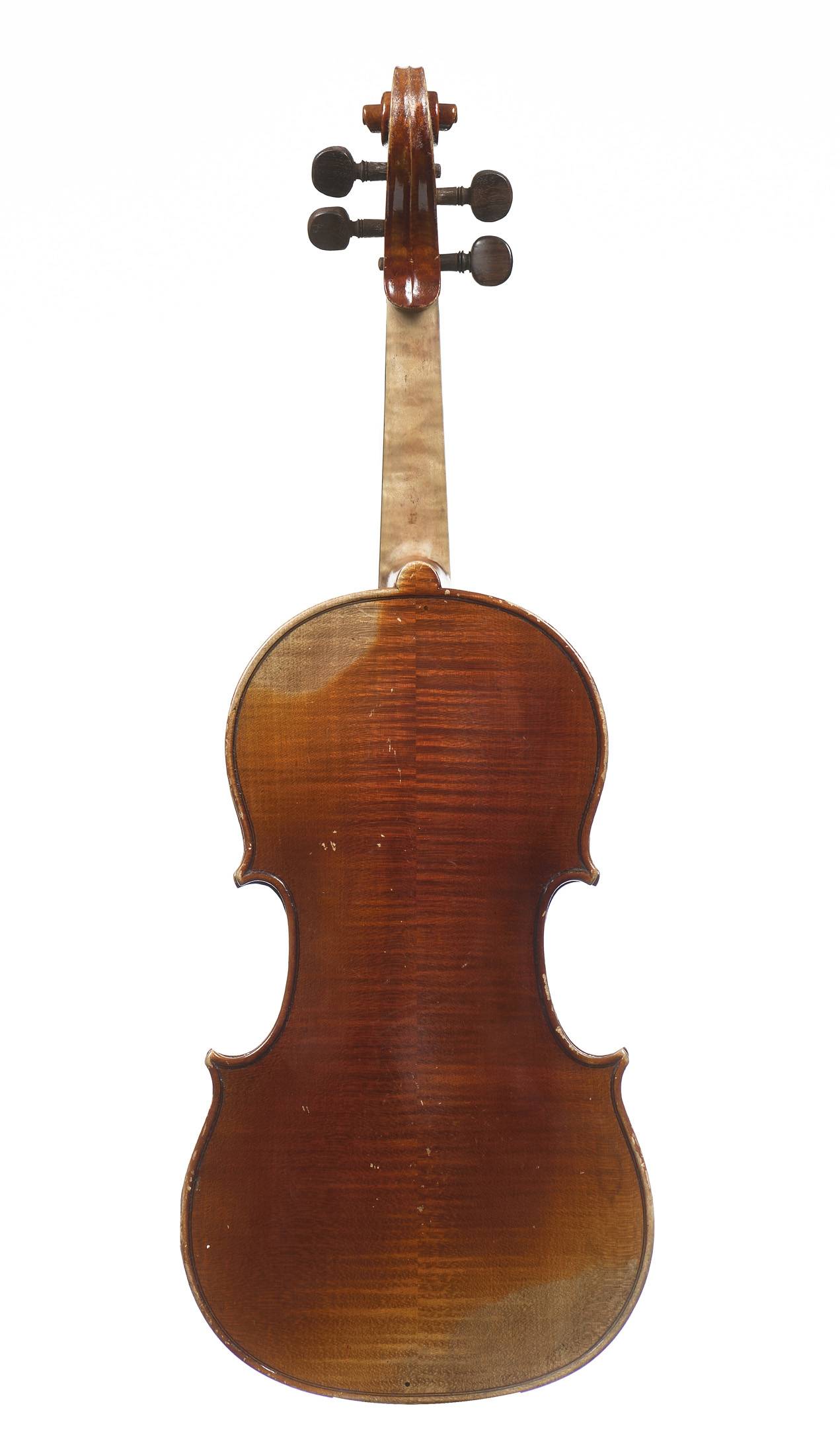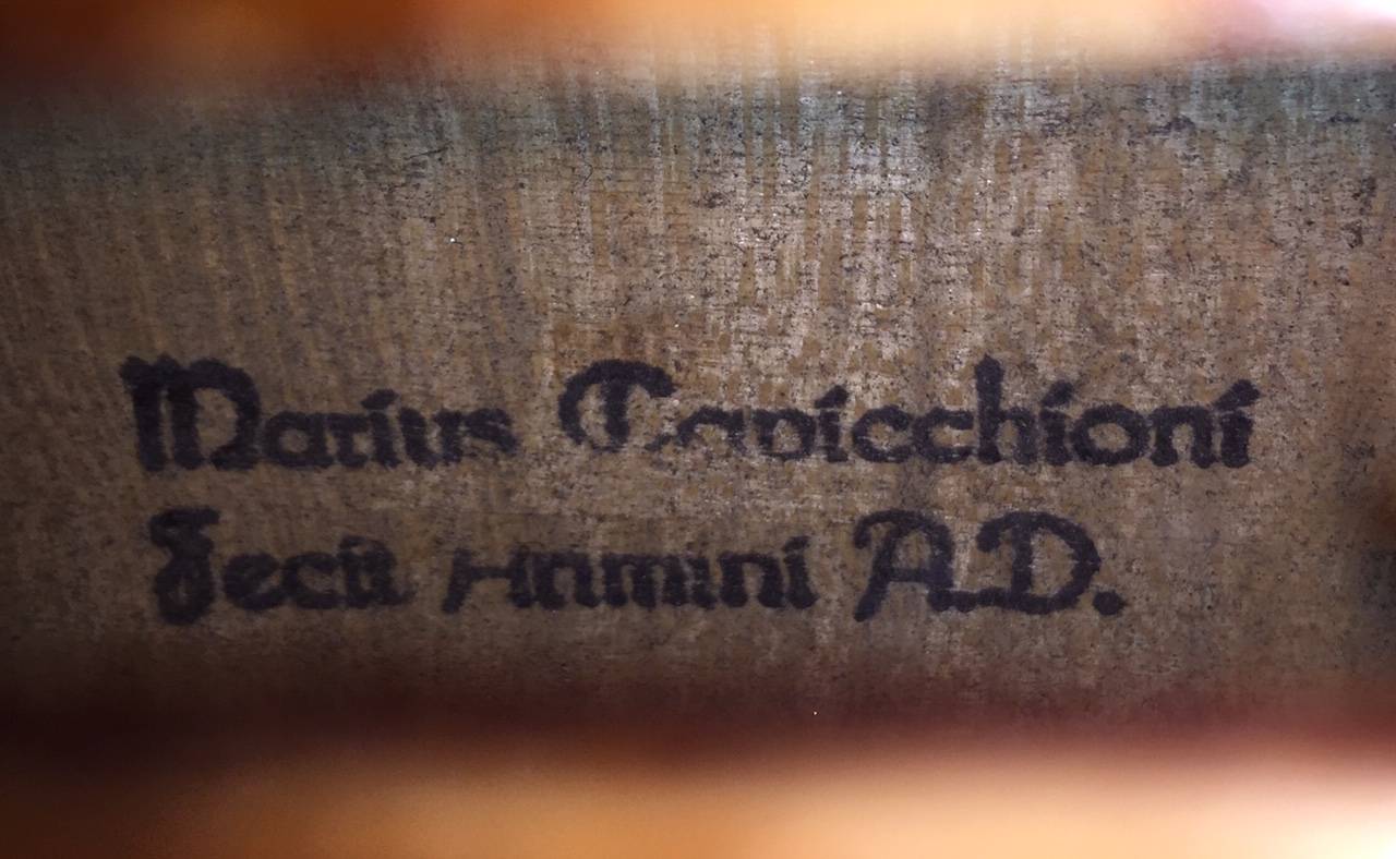 portant une étiquette "Marinus Capicchioni... 1927" et les marques au fond et sur la table à l'intérieur. Fond de deux pièce en érable. Vernis brun sur fond doré. 362 mm.