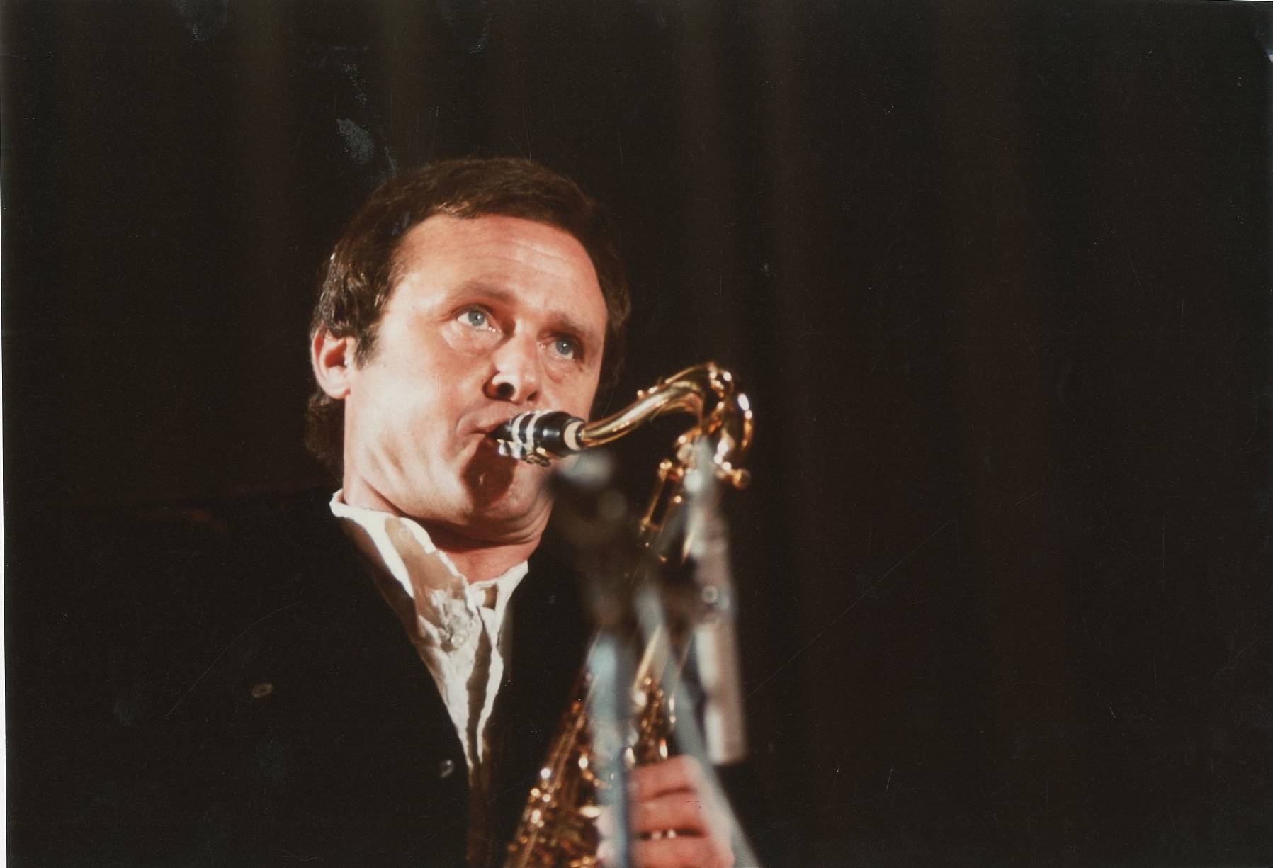 Stan GETZ au saxo. Cachet du photographe au dos.