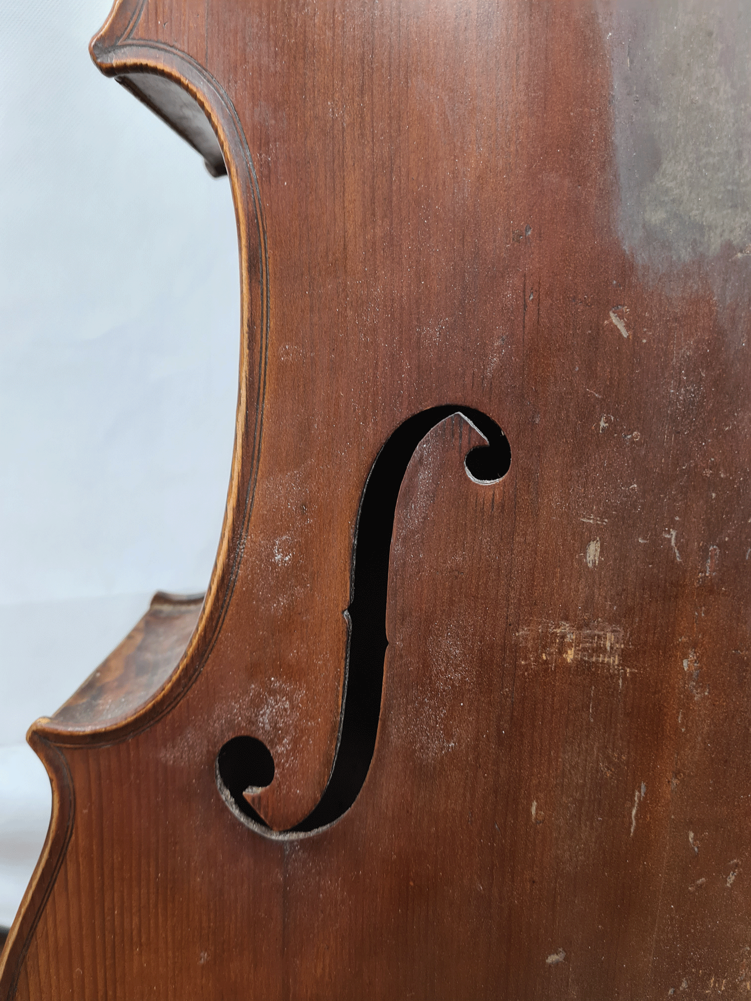 Cello bearing an apocryph stamp "...LAINE A PARIS". Cracks.