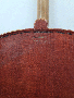 portant les marques au fer " SCHAUERS A PARIS"?. Fond de deux pièces en érable. Vernis orangé rouge sur fond doré. Traces de vers rebouchées. 747 mm. Diverses cassures.