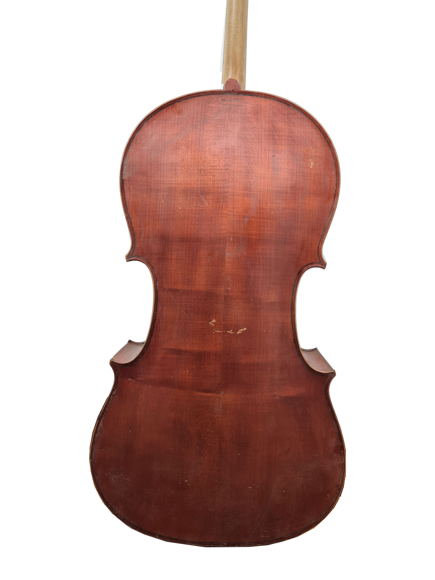 French cello bearing stamps " SCHAUERS A PARIS"?. Worm holes.