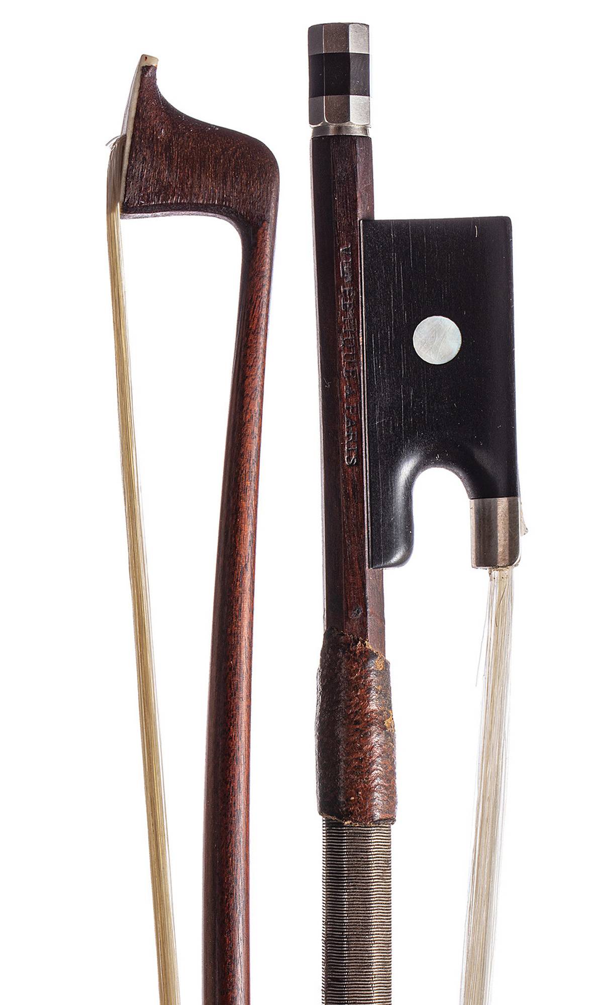 portant la marque au fer "Vtor FETIQUE A PARIS". Hausse d'un autre auteur, monté argent. Enture à la tête. 728 mm. 58g.