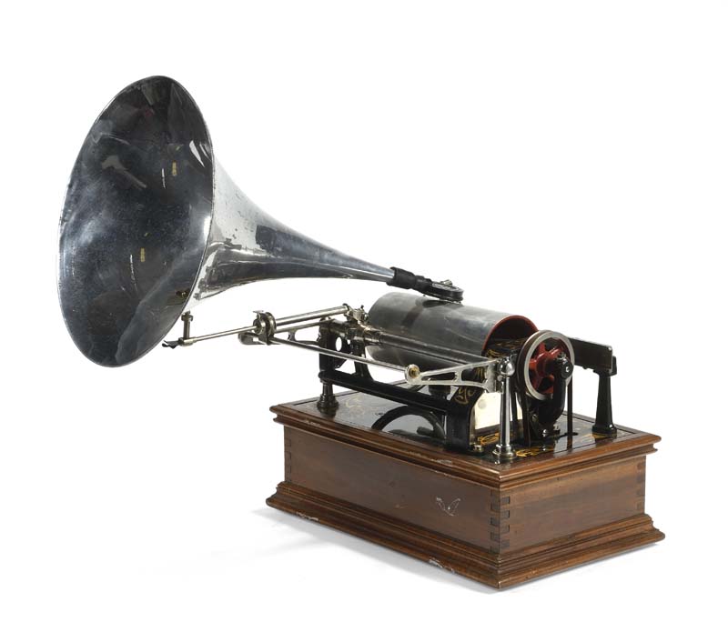 C’est le plus gros des phonographes PATHE. Le seul à jouer des cylindres de 21cm de long et 10,5cm de diamètre intérieur. Il est muni du système VERITE. Caisse en bois, support en fonte noire à rehauts or. Pavillon aluminium.
