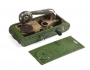 Phonographe portatif pour randonneur ou pique-nique ayant l‘apparence d’un appareil photo. Ce phonographe a un aménagement intérieur très astucieux. Diaphragme EXCELDA. Tôle peinte façon crocodile vert.