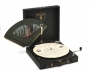 Valise de voyage comprenant un Phonographe de jardin composé d’un mouvement mécanique – d’un pavillon et diaphragme en carton pliable à décors de forêt, au bout duquel s’adapte un saphir approprié.