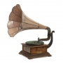 Phonographe à disques avec grand pavillon floral peint. La caisse est en bois sculpté – Diaphragme PATHE.