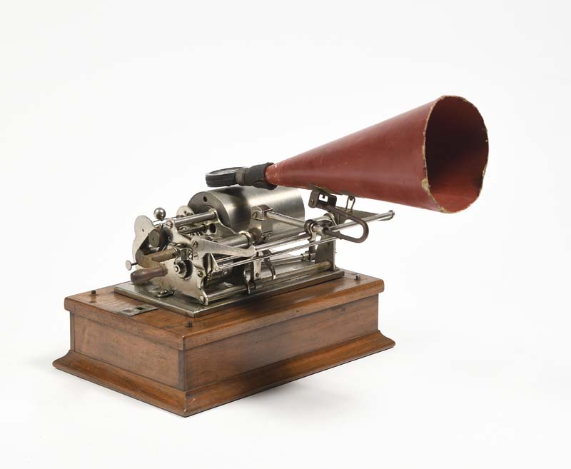 Phonographe à cylindres, retournable, équipé du pavillon en carton rouge et du système VERITE. Ne joue que des cylindres inter.