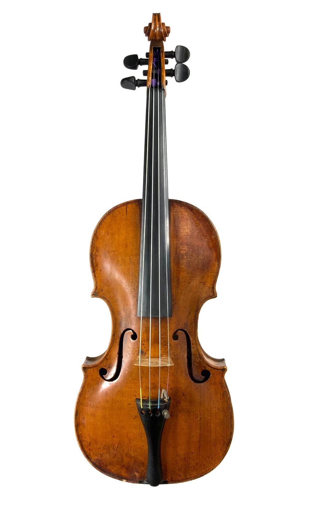 Fond de deux pièces en érable sans ondes. Table en épicéa aux pores serrés. Vernis brun doré.