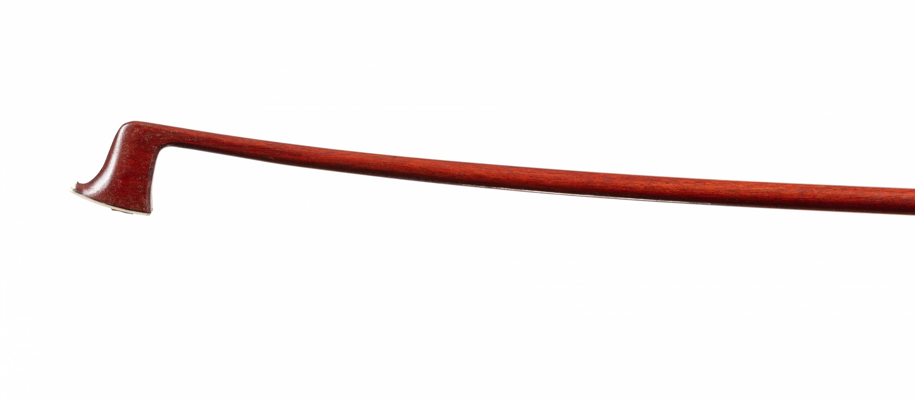 fait à Mirecourt chez JTL. Baguette ronde en bois de pernambouc. Hausse ébène, monté maillechort.