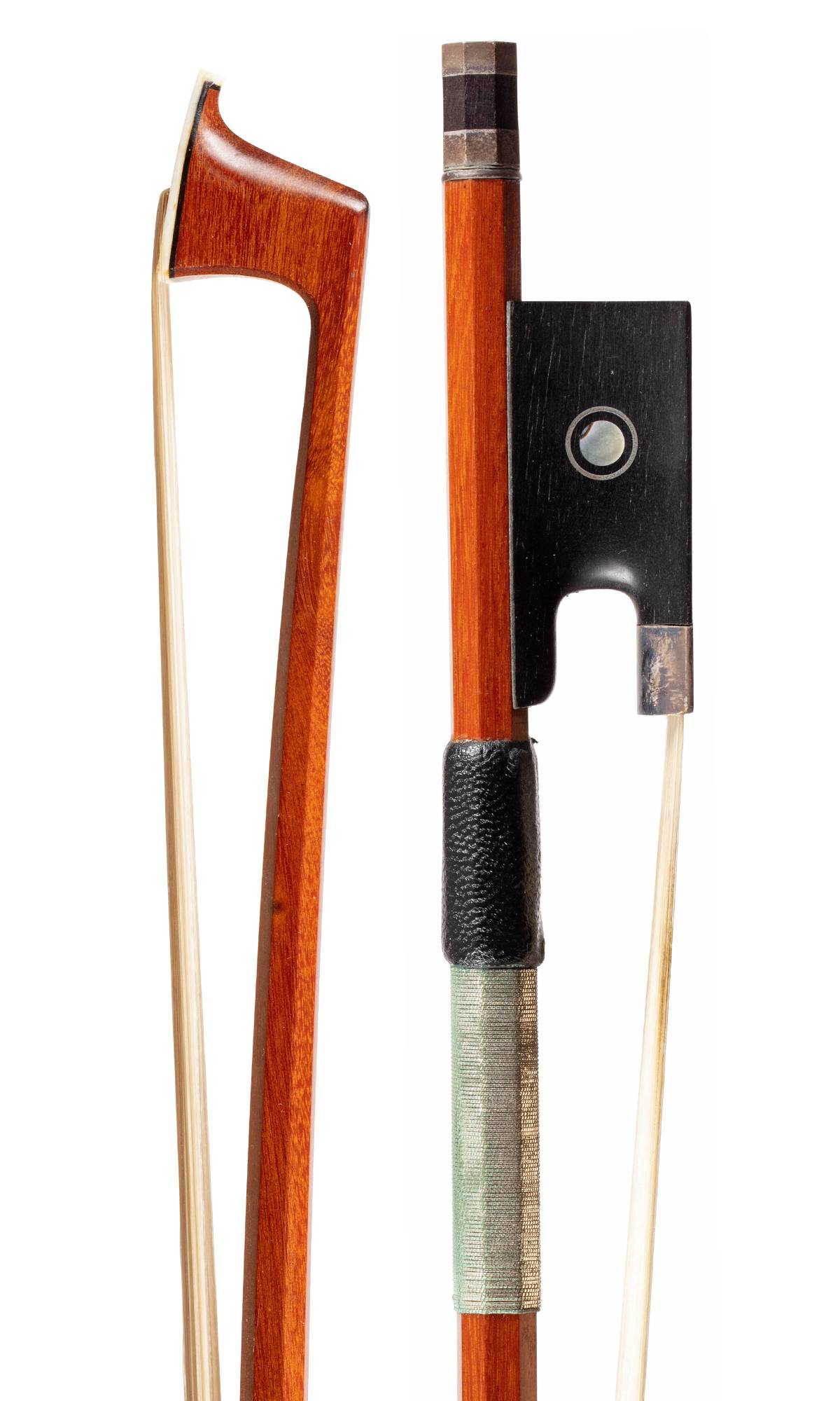 Baguette octogonale en bois de pernambouc. Hausse ébène, monté argent.
